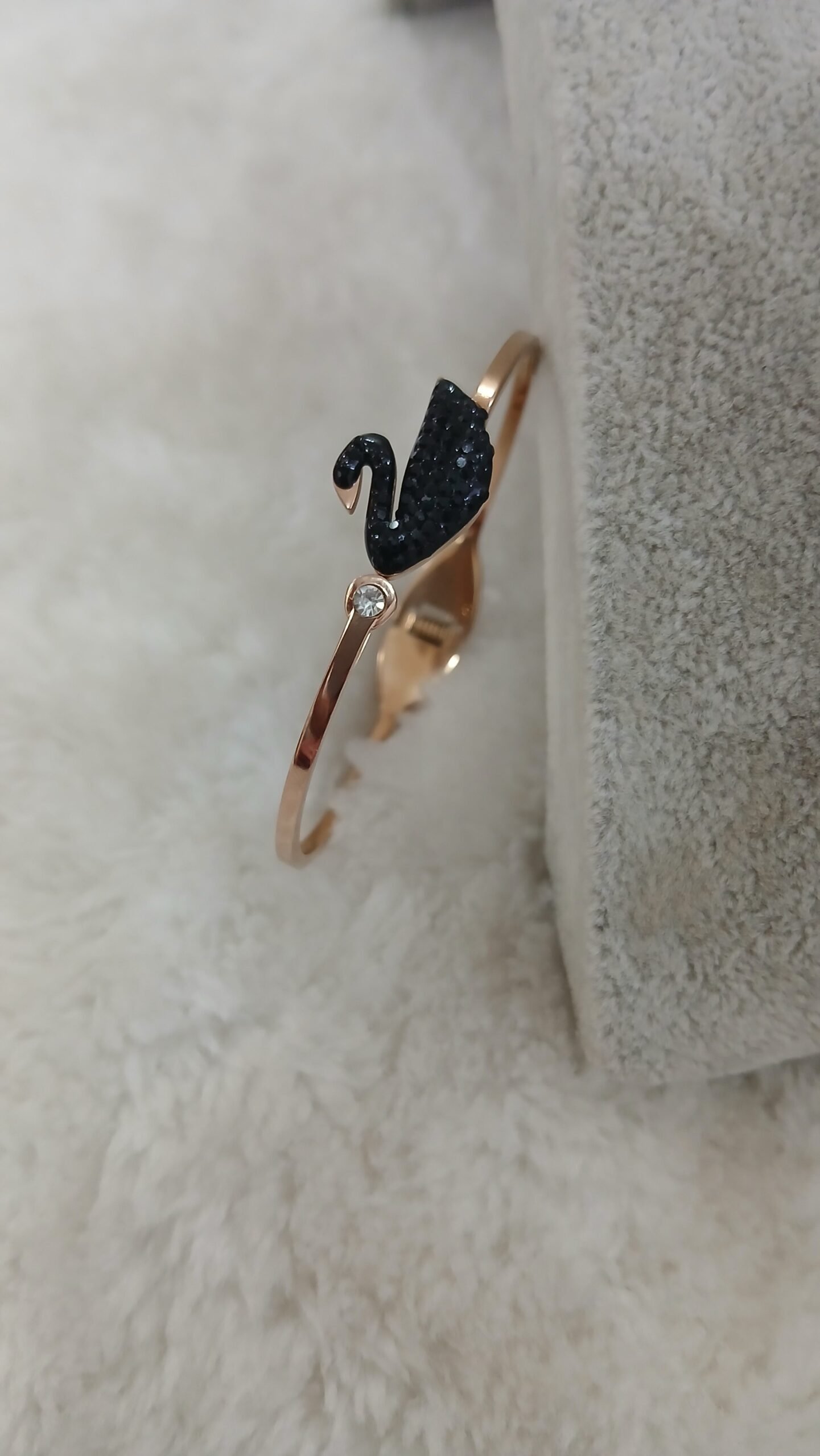 Be the first to review “Rose gold shade black stone swan bracelet” Cancel reply