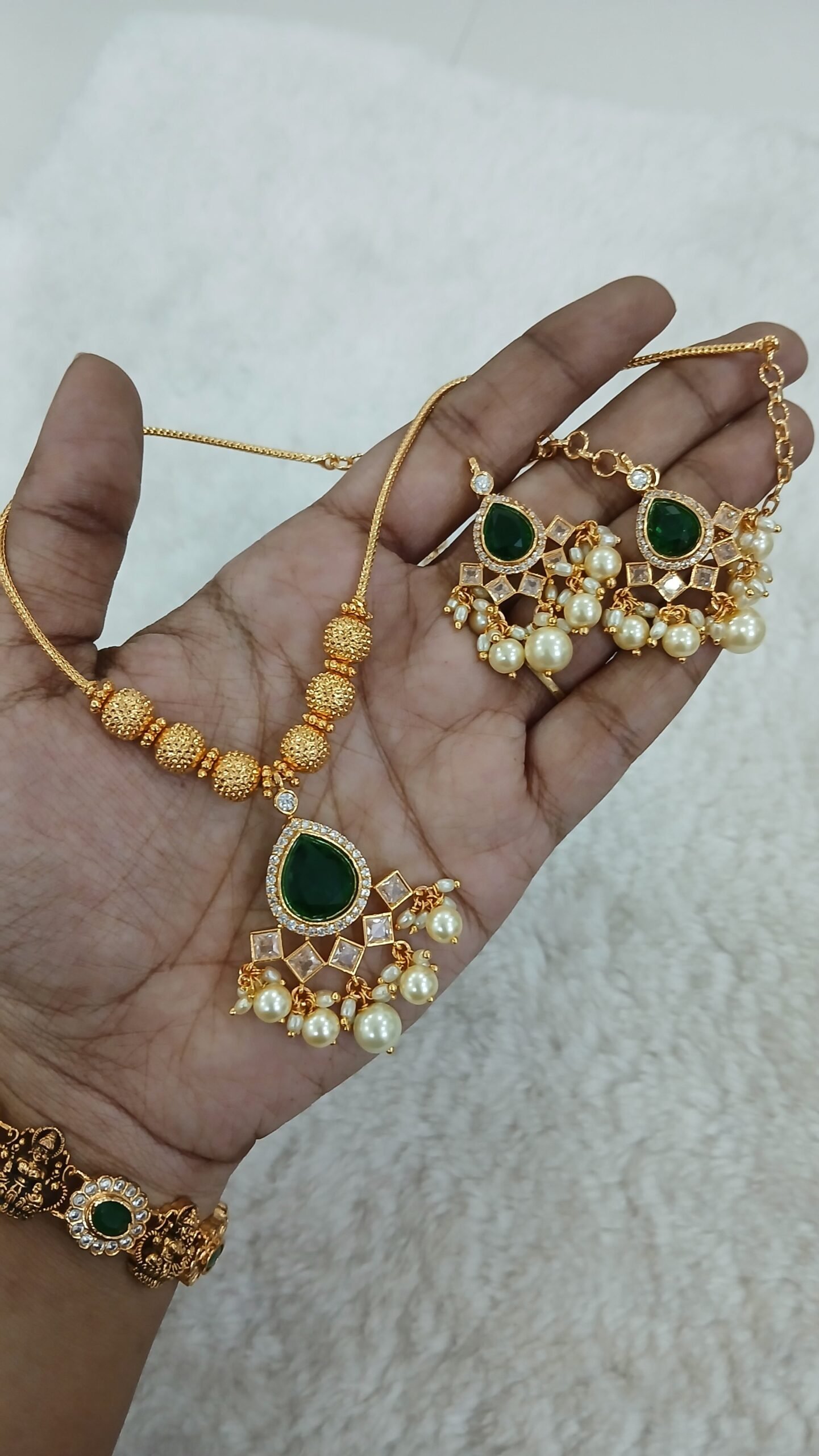 Be the first to review “GREEN stone set with naan chain & Earrings” Cancel reply