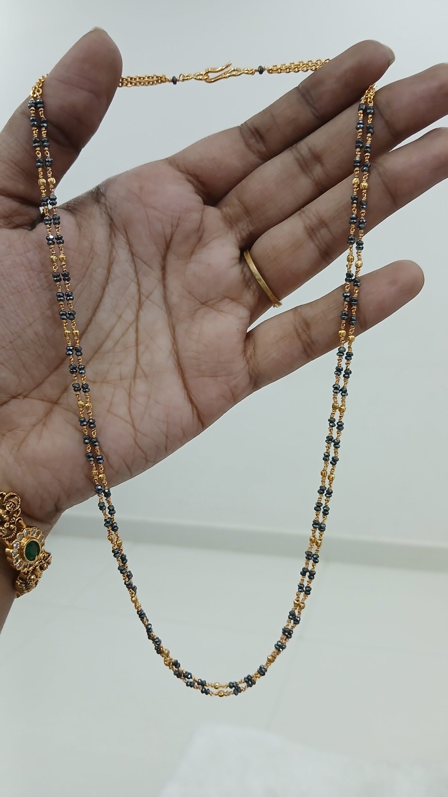 Double line black diamonds with kattu theega & kattu gold balls (18 inches)