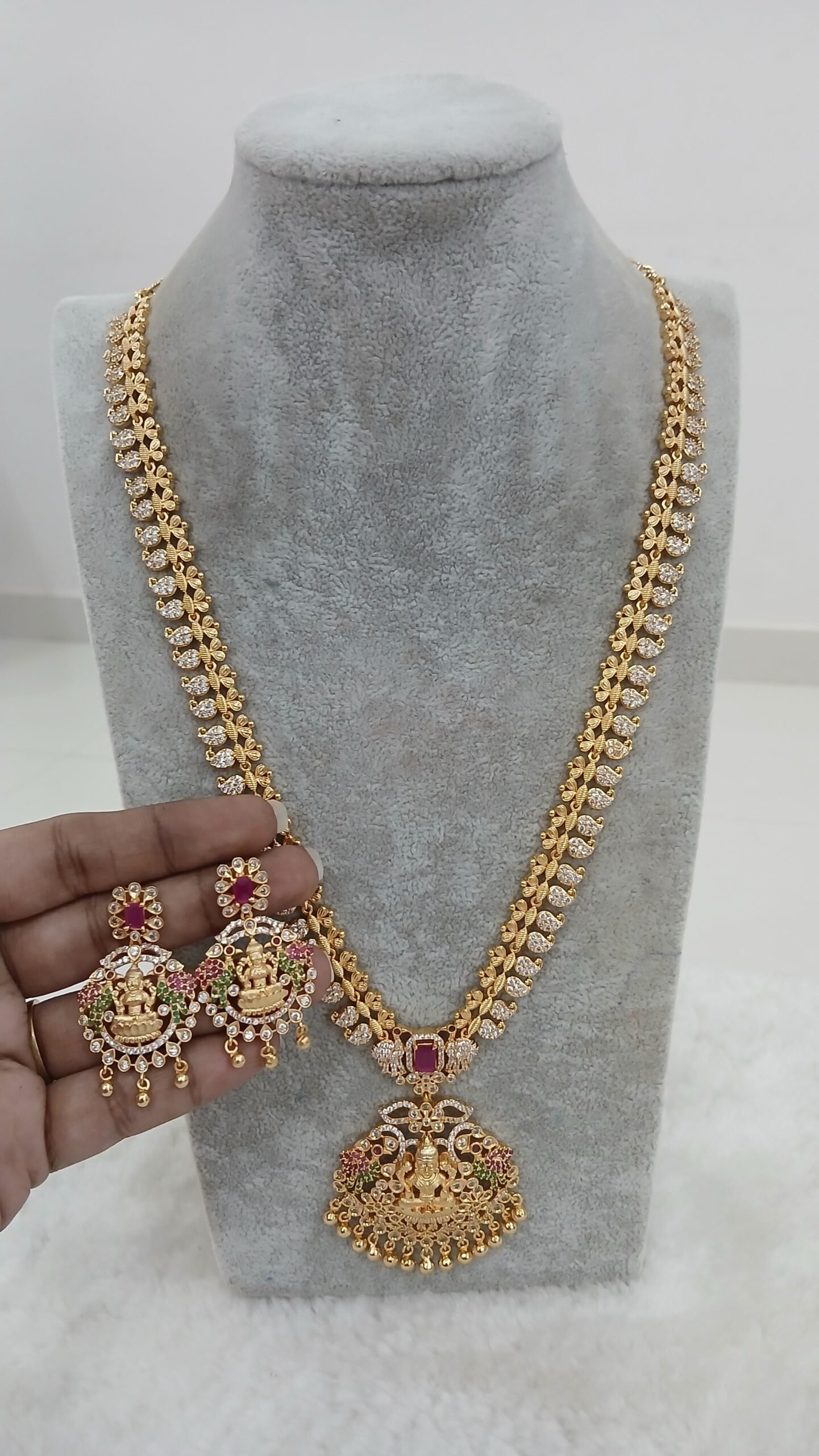 Long mango haaram with Lakshmi pendant ( Micropolish )