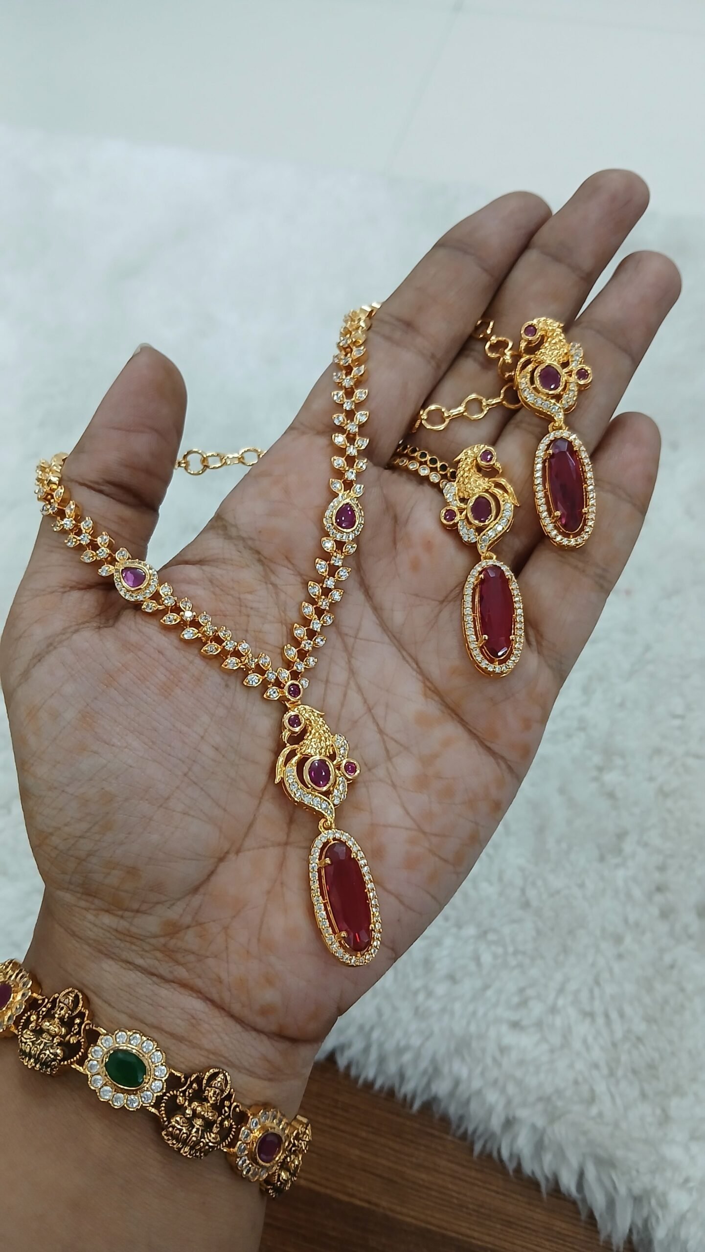 Be the first to review “Pink stone Peacock neck set” Cancel reply