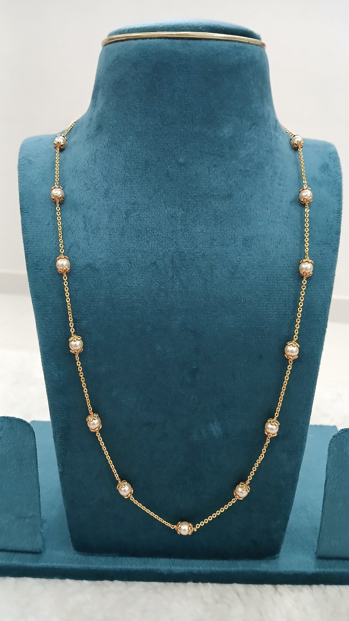 25 Inches simple Gold copy Swarouski chain with kattu theega