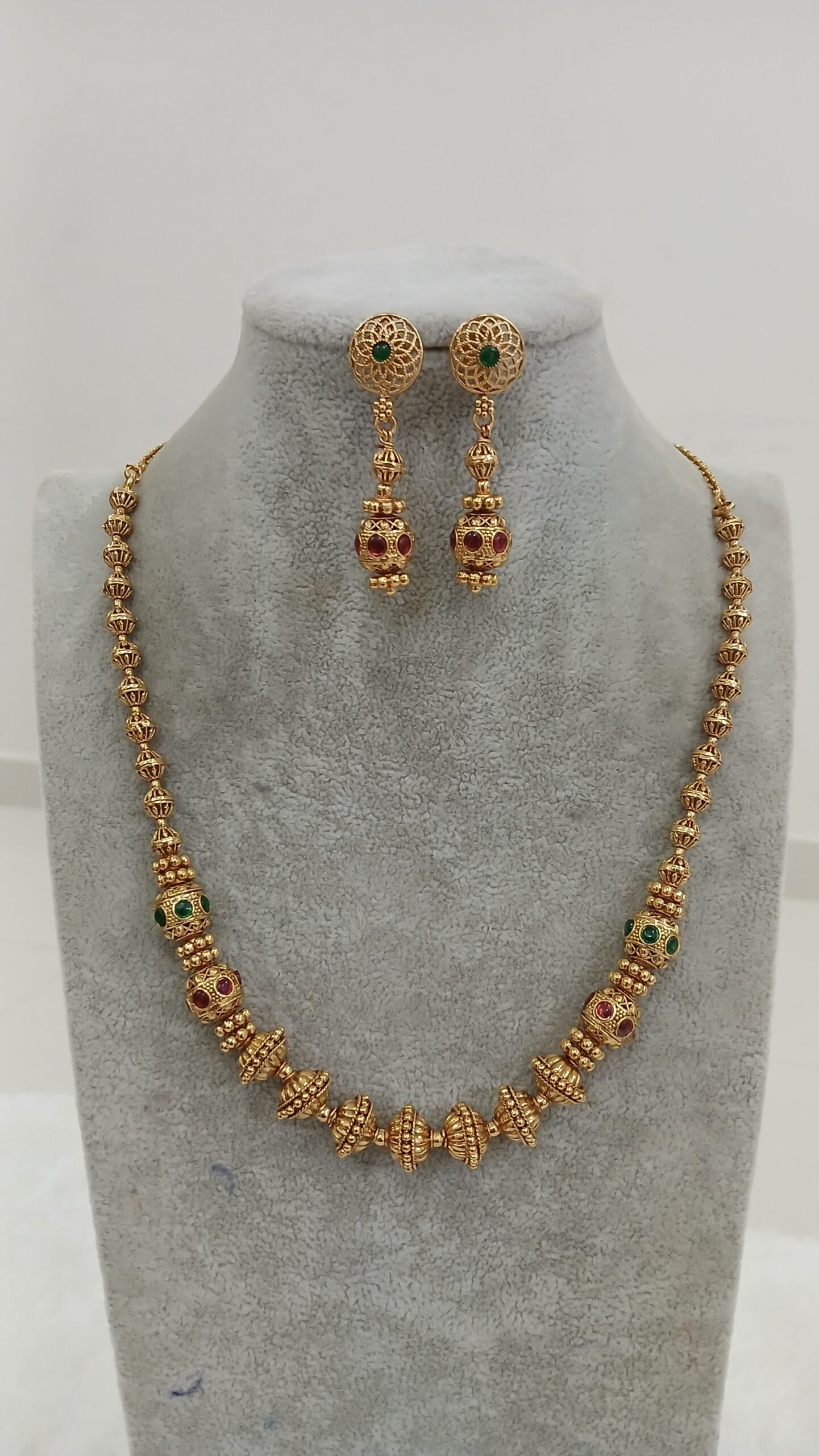Short Antique finish chain with earrings ( MULTI )