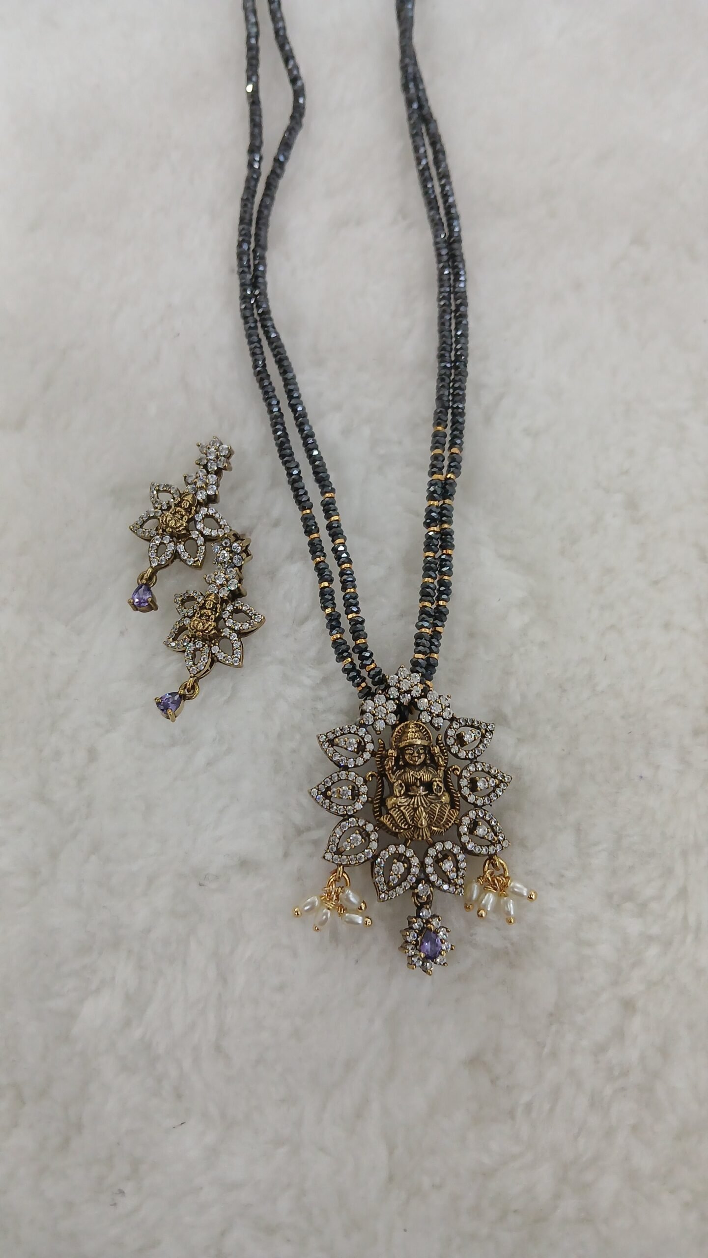Be the first to review “VIOLET Lakshmi pendant set with black diamonds” Cancel reply
