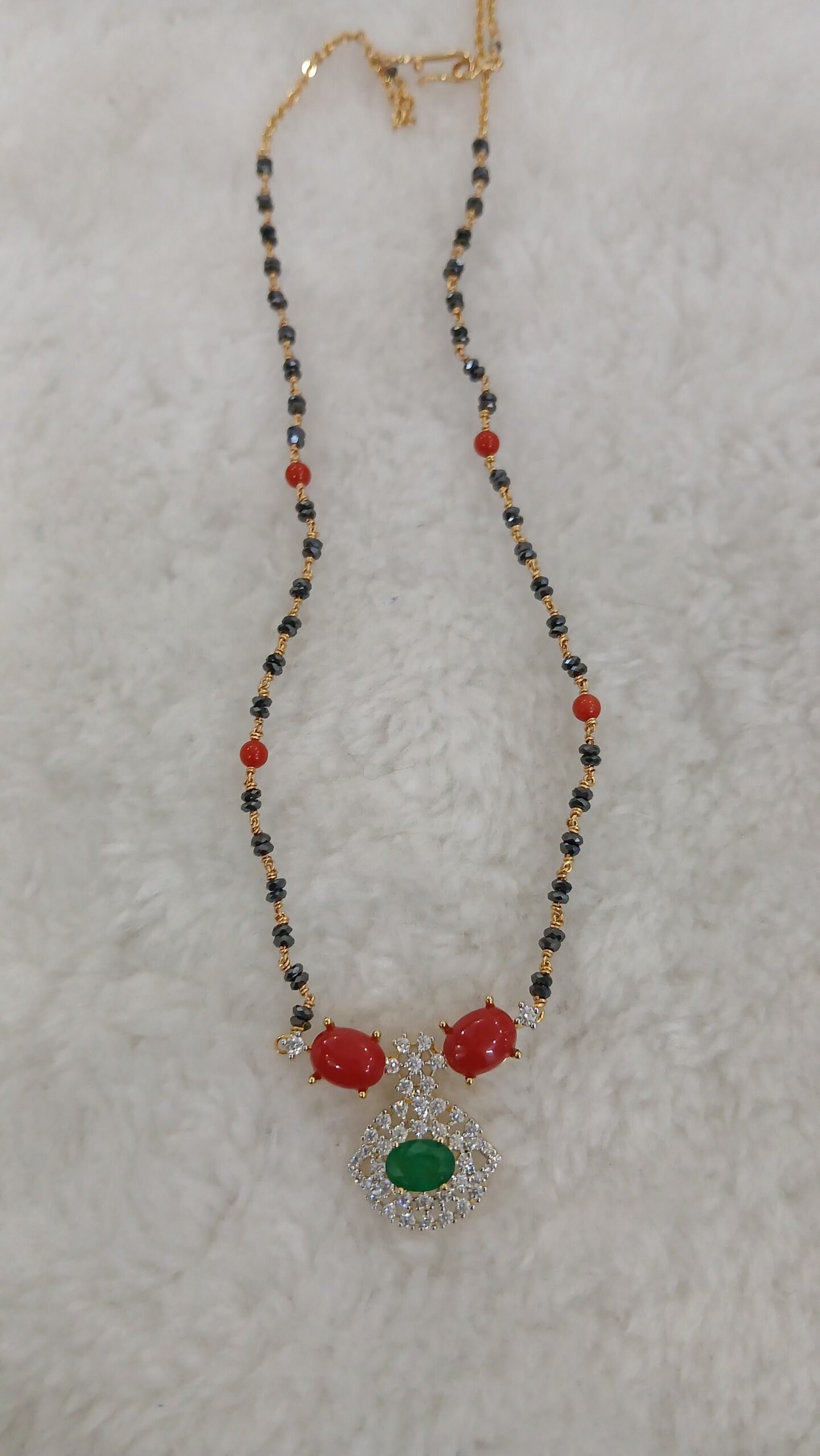 Coral diamond pendant with black diamonds ( Kattu theega )