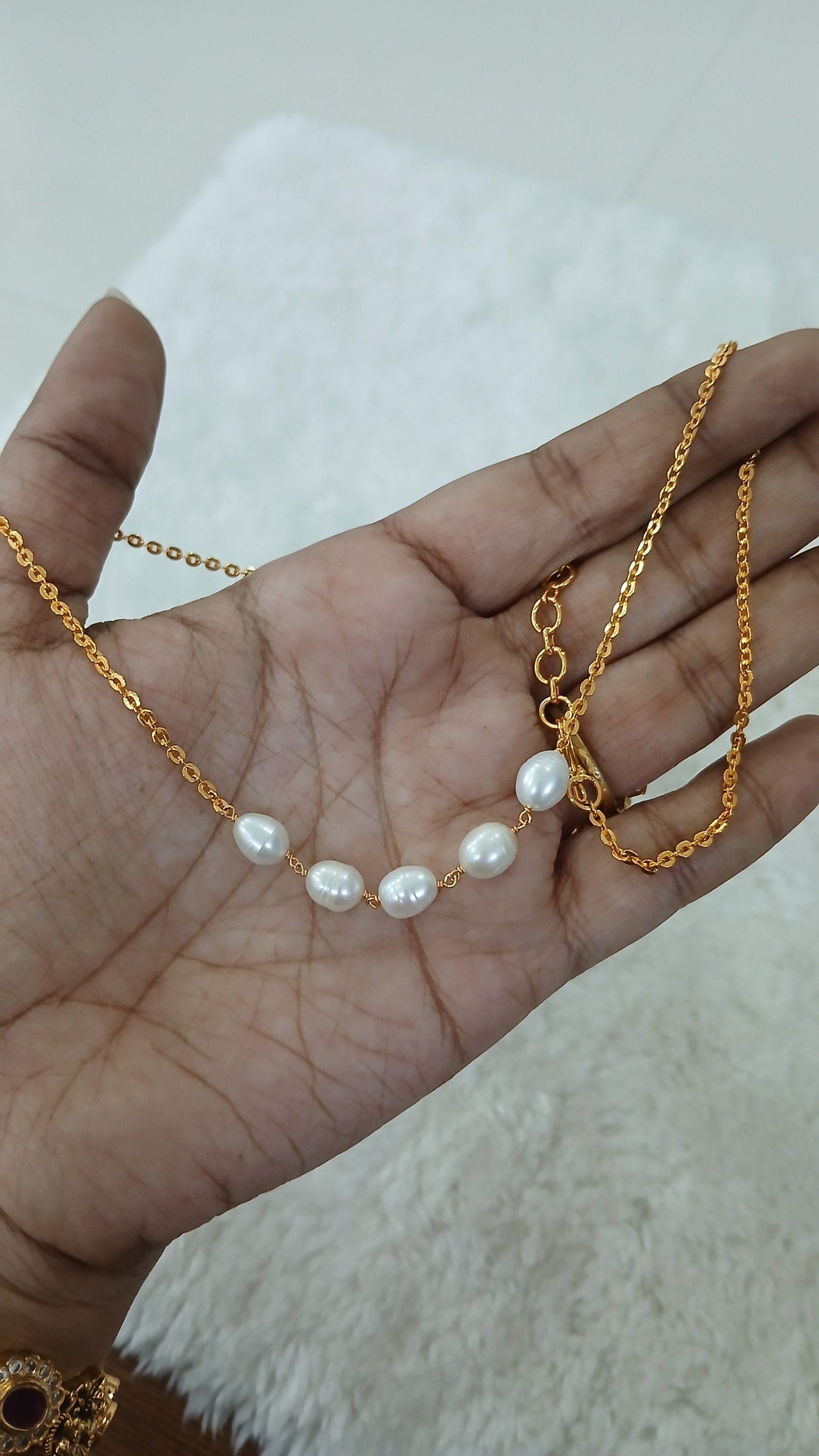 Simple 5 pearls chain ( Real rice pearl / 17 inches )