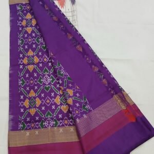 “Parrot & elephant ikkat weaving box pattern with orange heavy zari border double warp pattu saree ( with big zari checks blouse and ikkat peacock weaving pallu )” has been added to your cart. View cart