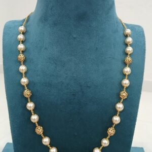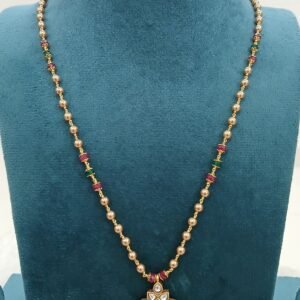 Gold copy single line swarouski kattutheega chain with nakshi balls