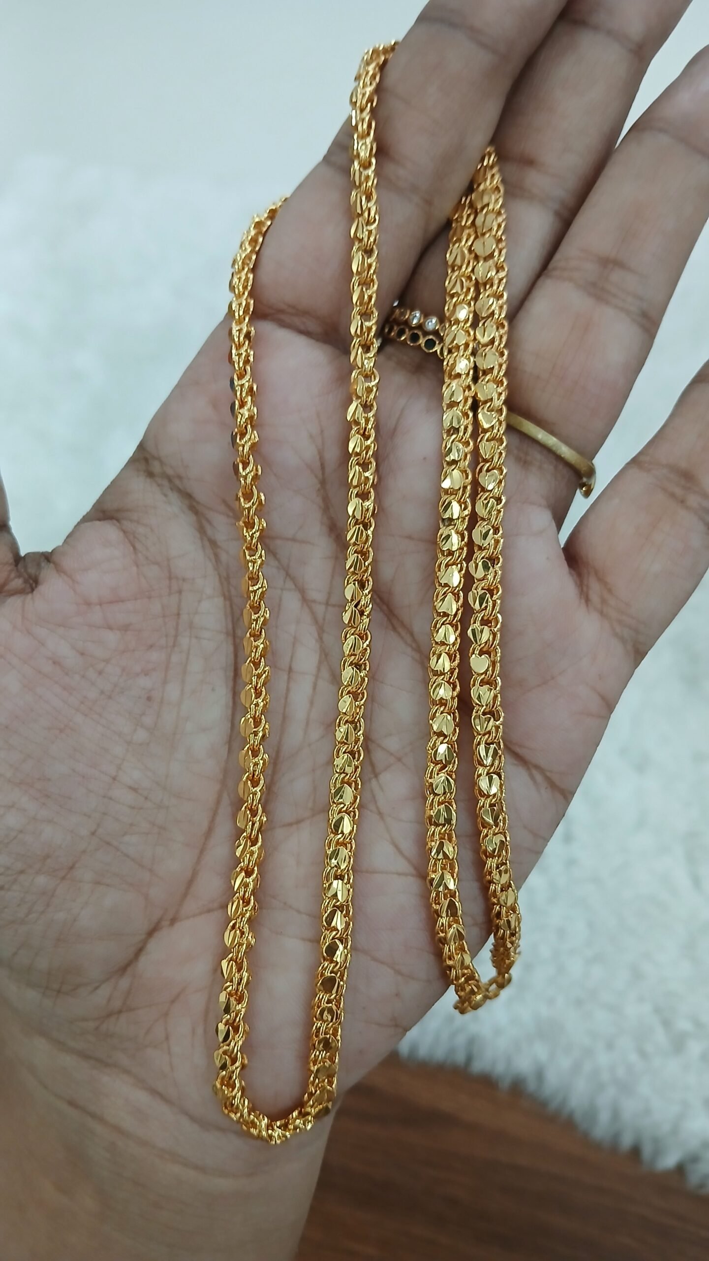 Be the first to review “24 inches Flat pattern heart cutting Micropolish thaali chain” Cancel reply