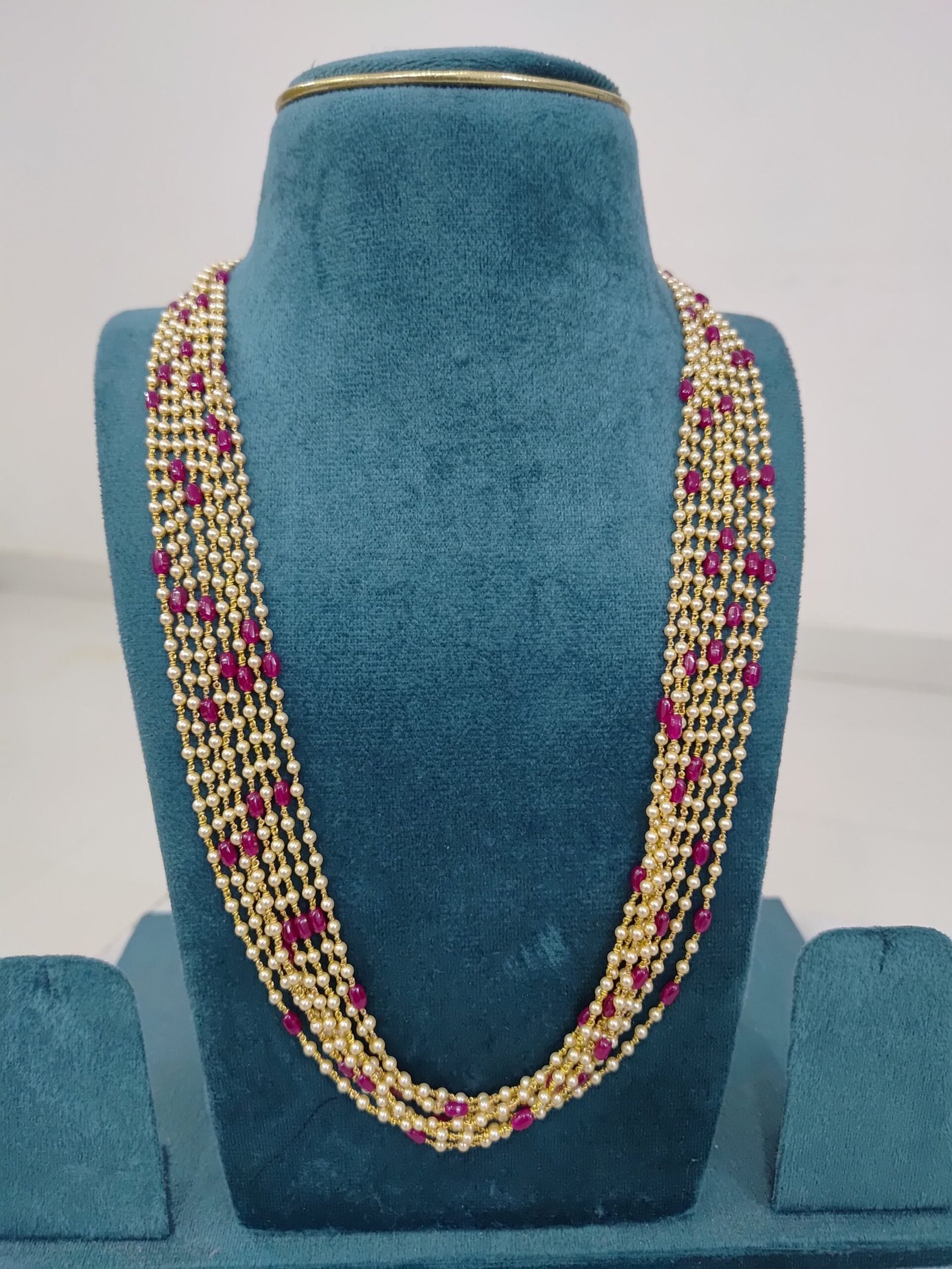 Be the first to review “8 Lines gold copy real Ruby & Swarouski beads Kattutheega long haaram” Cancel reply