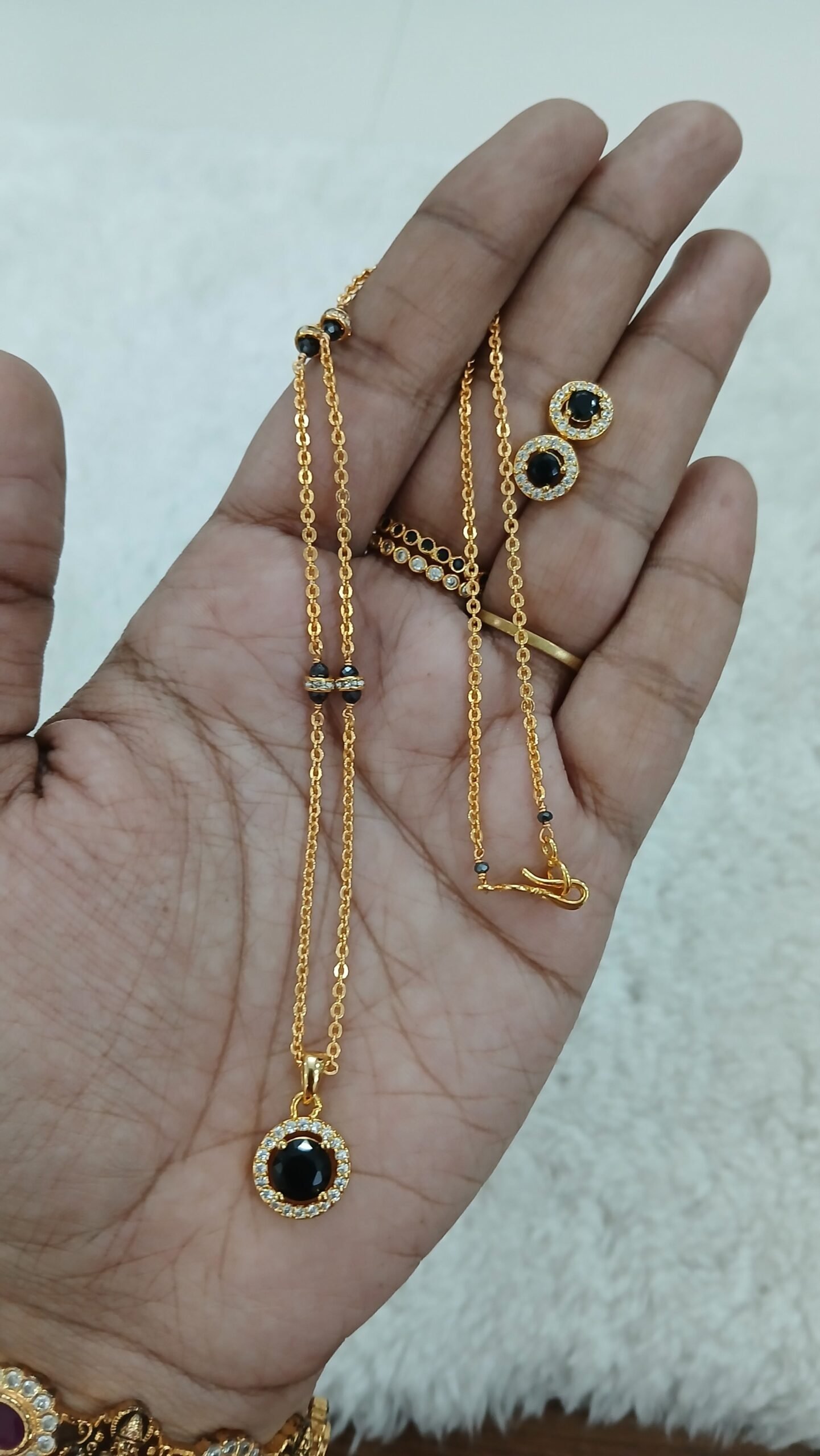Be the first to review “Black stone pendant & earrings with simple chain” Cancel reply