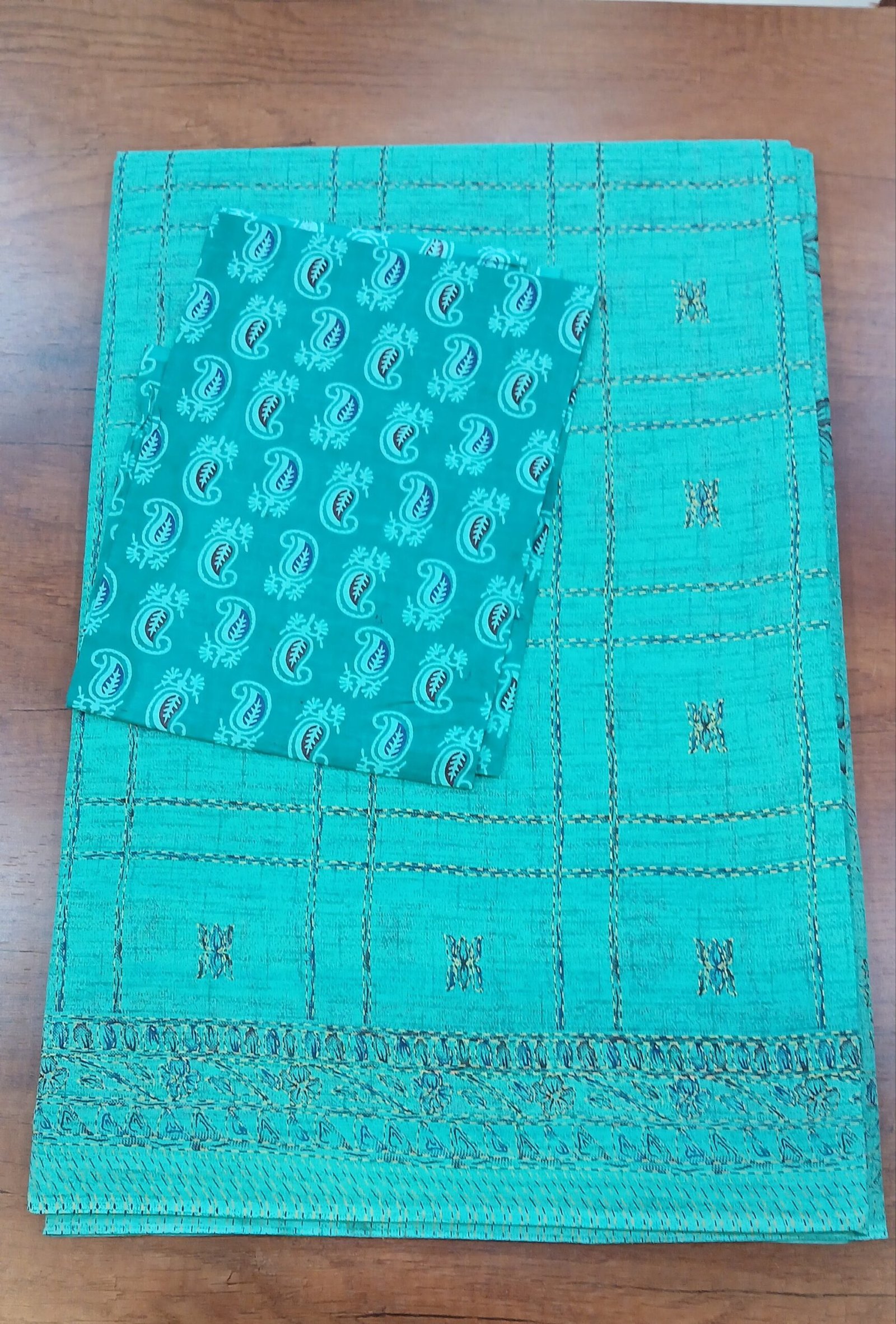 Be the first to review “BLUE cotton saree with blouse ( Kantha stitch print)” Cancel reply