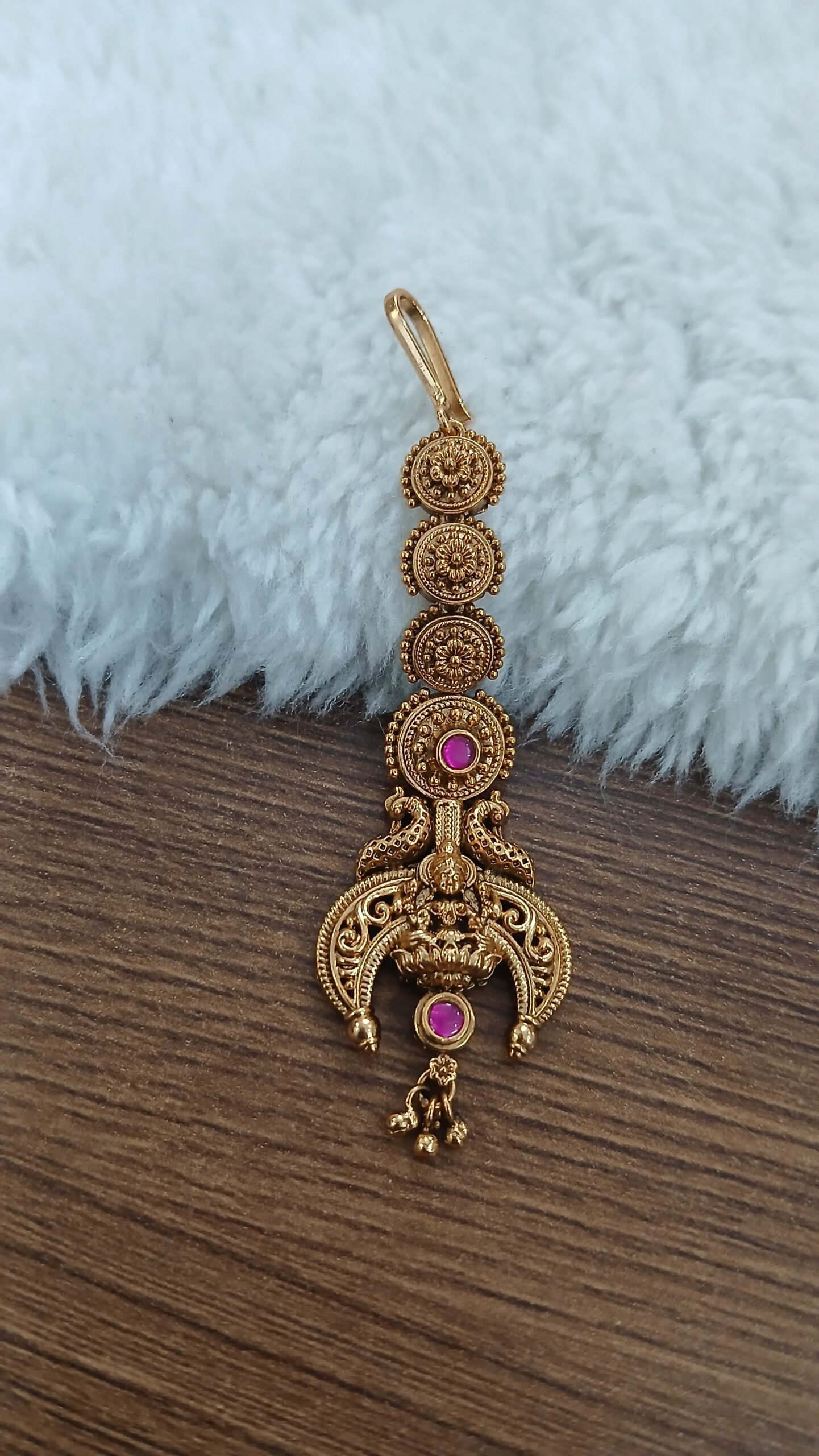 Be the first to review “Circle pattern antique nakshi Lakshmi maang tika (Pink)” Cancel reply