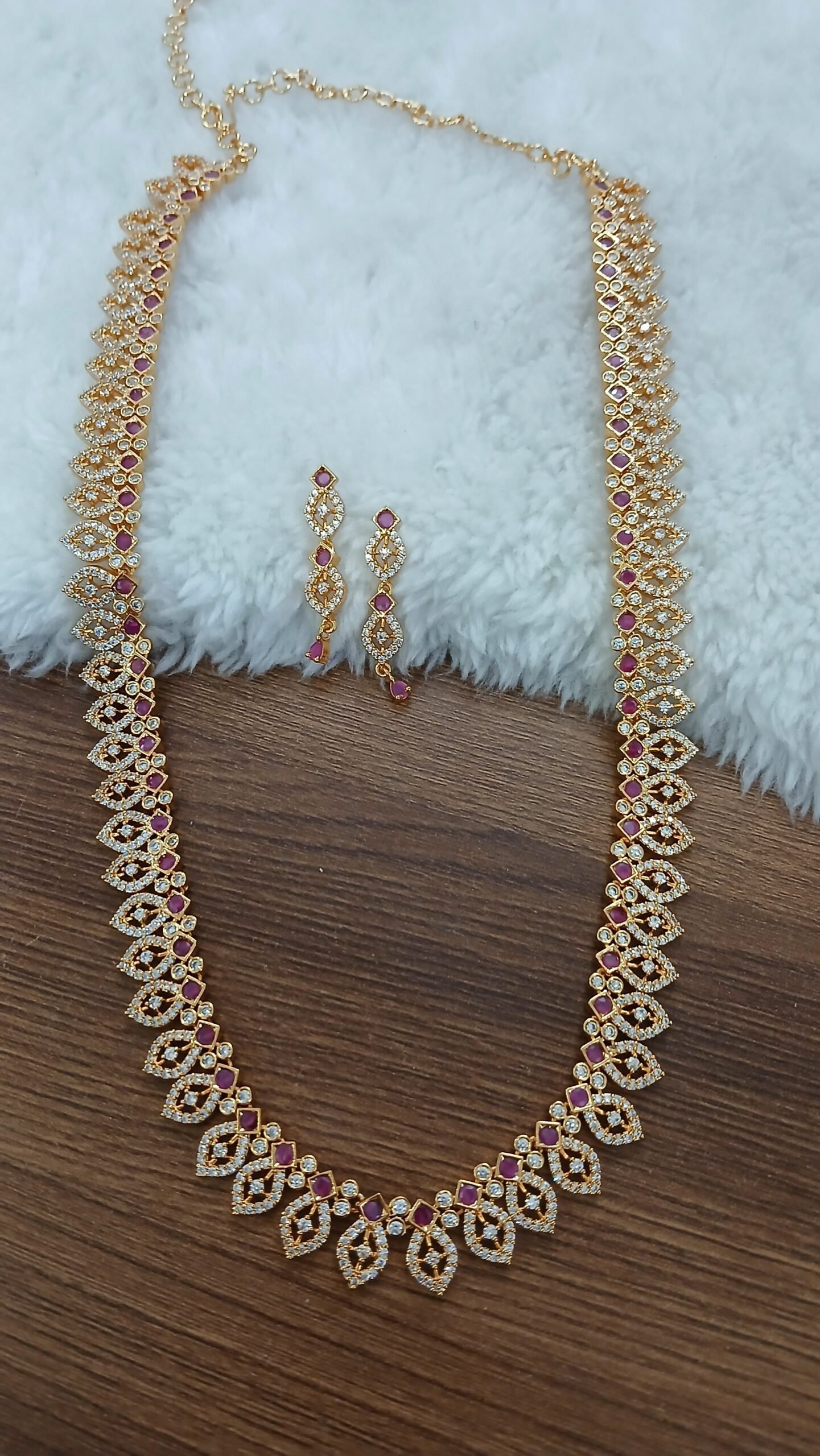 CZ with ruby simple Long neck set with earrings (Micropolish)