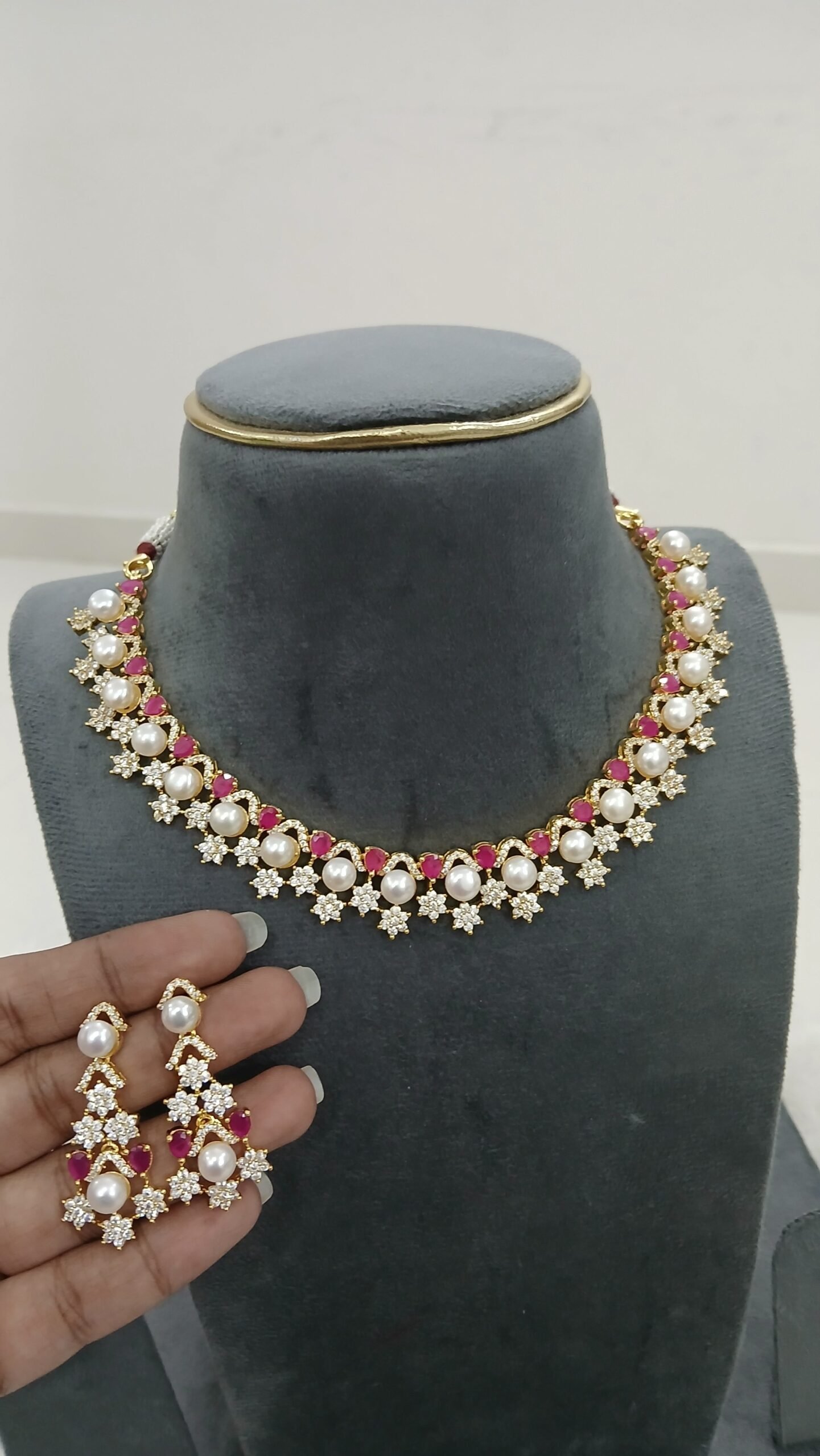 Be the first to review “Diamond copy neck set with real pearls (PINK)” Cancel reply