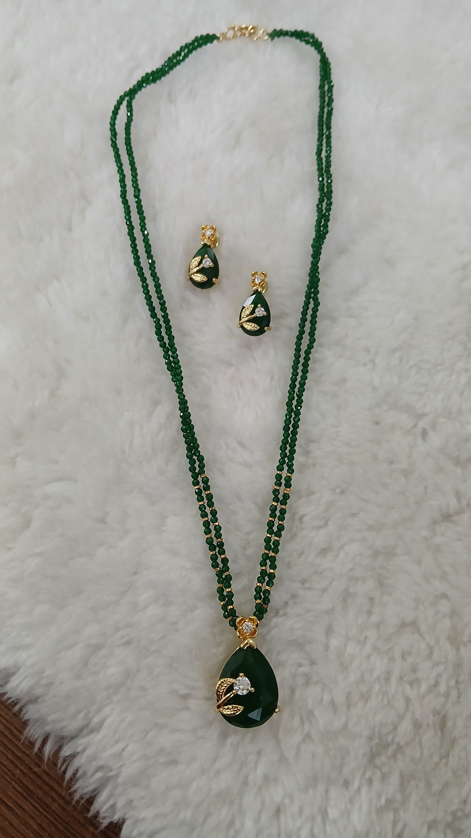 Double line green spinel chain with green stone pendant and earrings ( 17 inches )