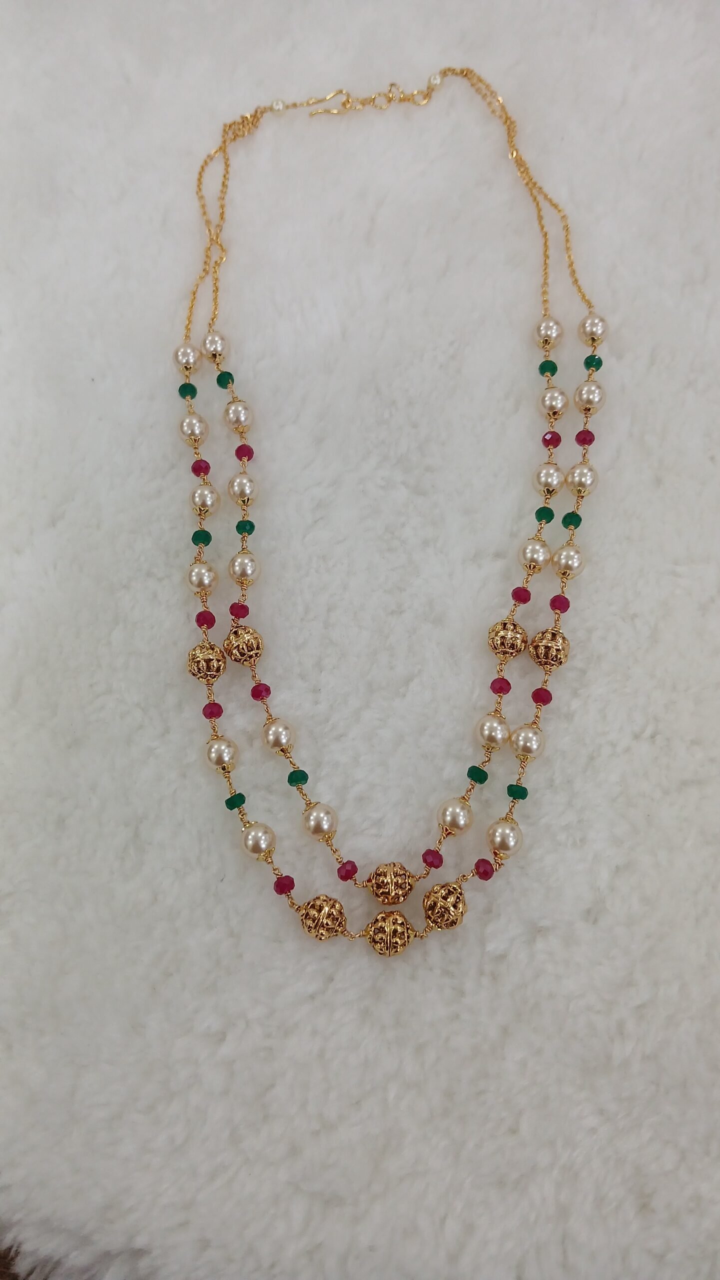 Double line real beads with swarouski and Chetan beads ( Micropolish)