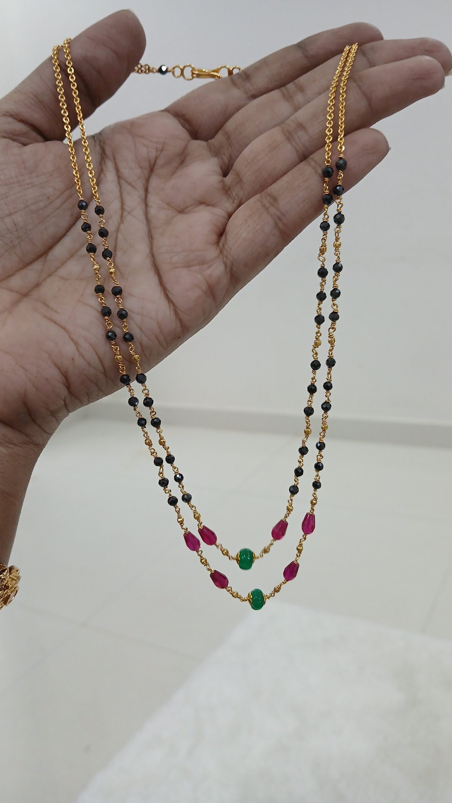 Real black diamonds, emerald & ruby chain ( Micropolish)