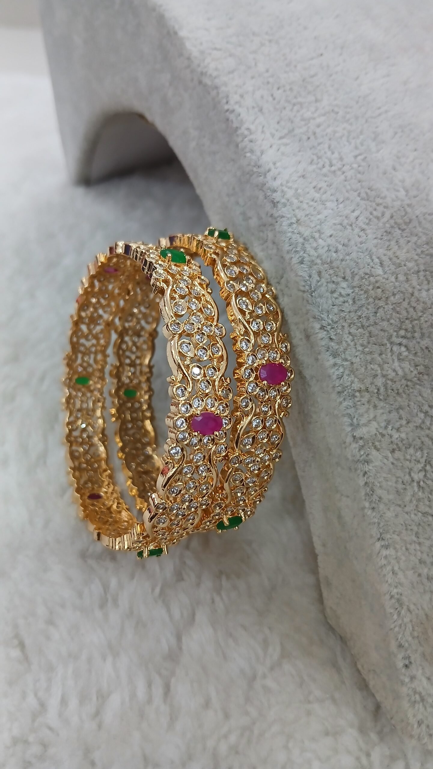 Be the first to review “Full stones floral design broad bangles (set of 2)” Cancel reply