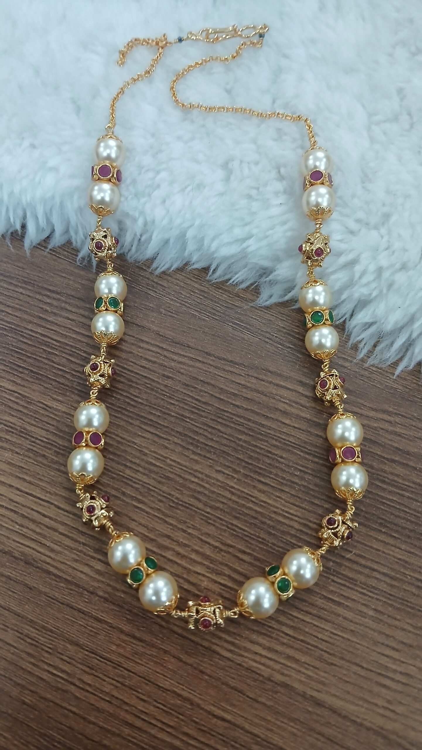 Be the first to review “Gold copy beads & stone rings chain with kattutheega”