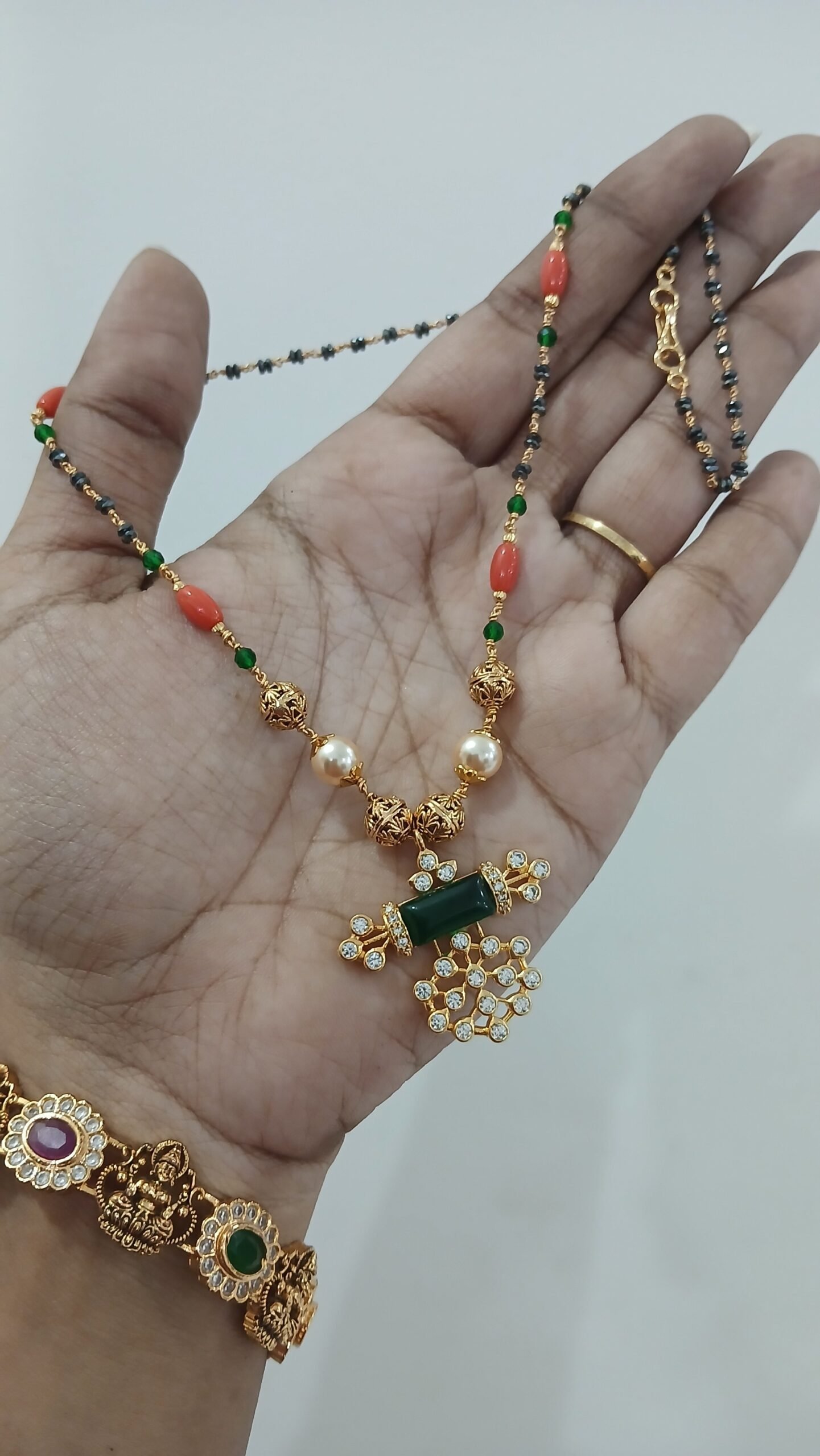 Real black diamonds chain with real swarouski and coral done with Kattu theega