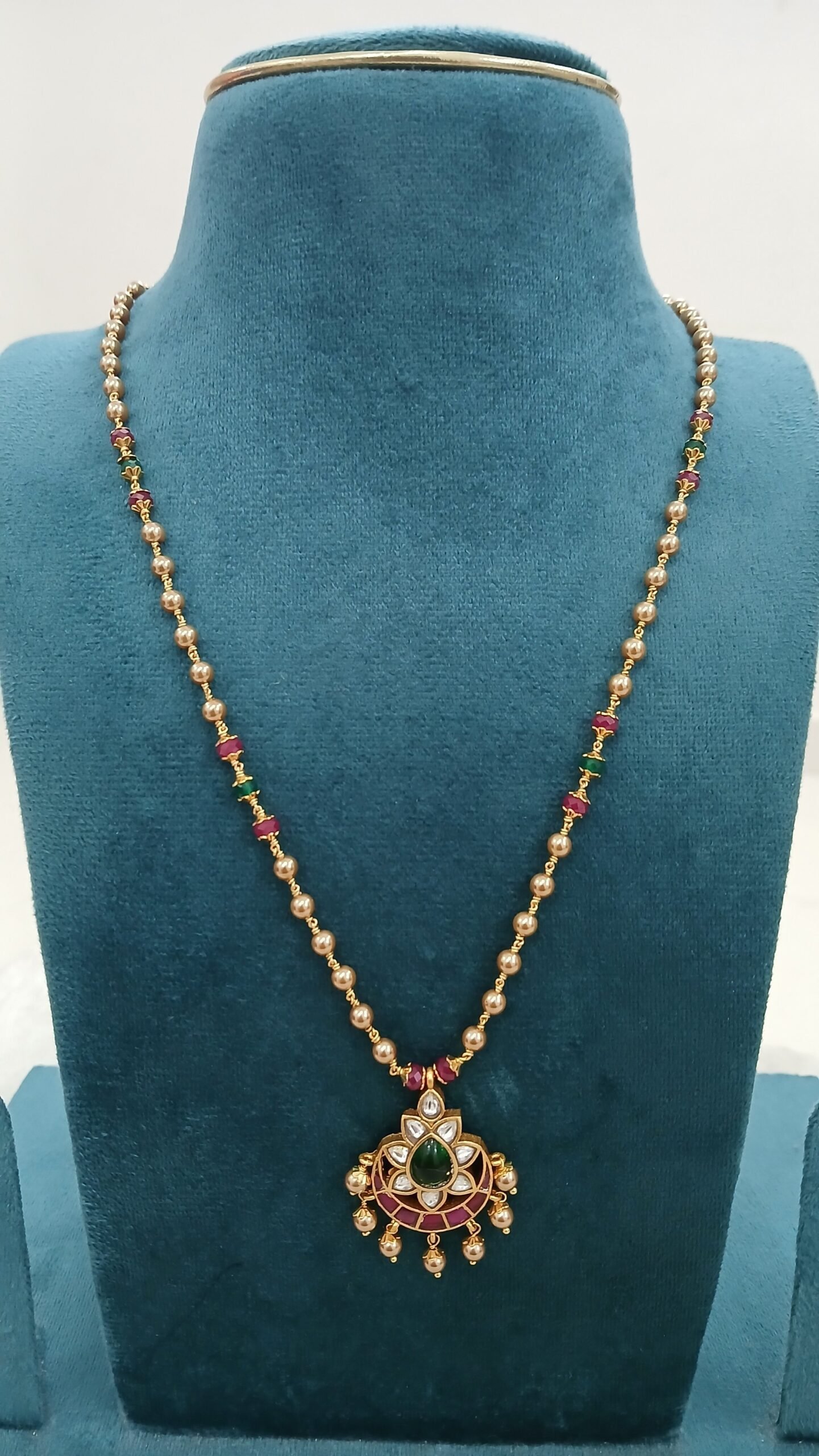 Be the first to review “Gold swarouski with jadau kundhan pendant (kattutheega 22 inches)” Cancel reply