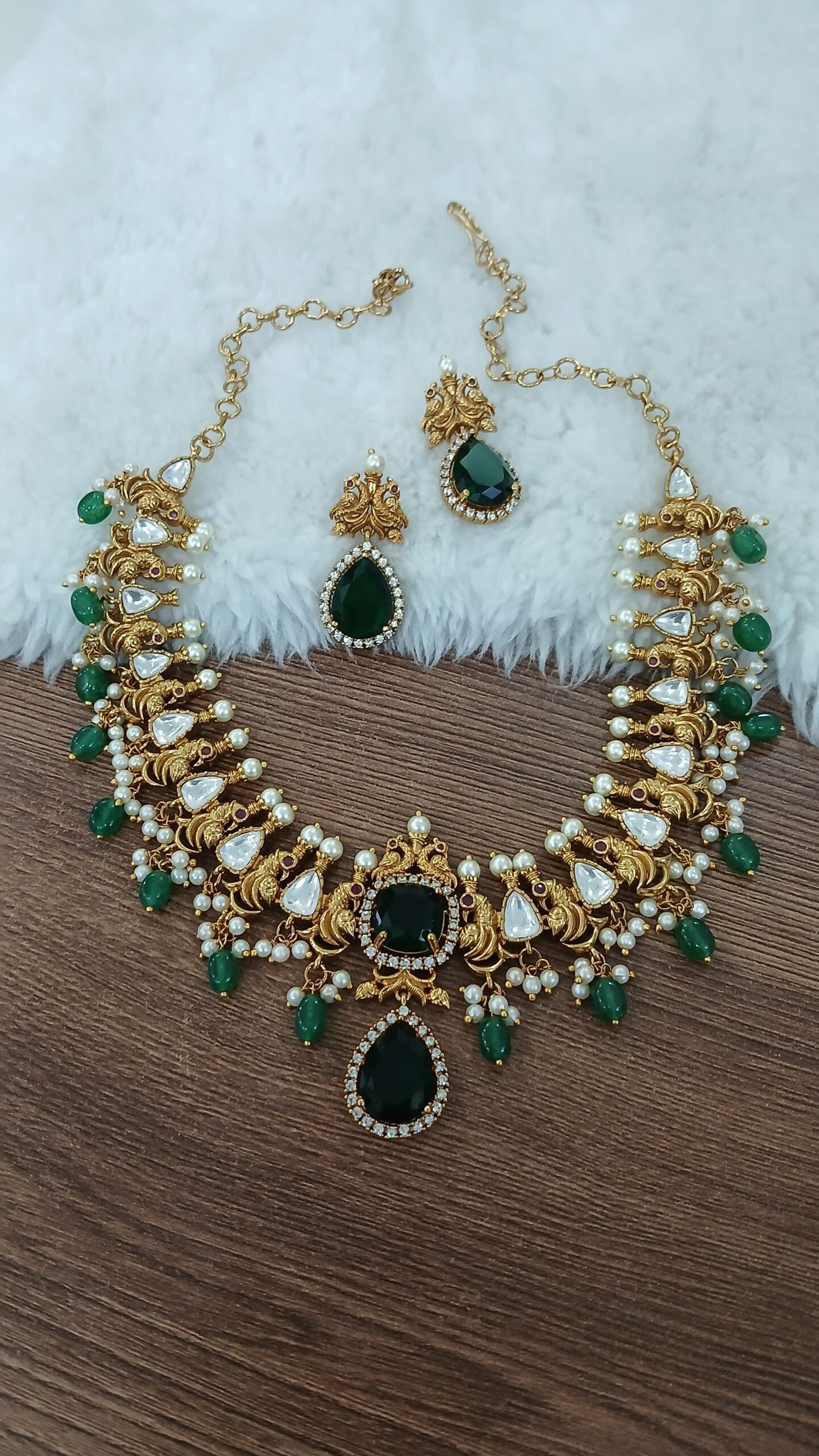 Be the first to review “Green Combination nakshi set with moissanite stones” Cancel reply