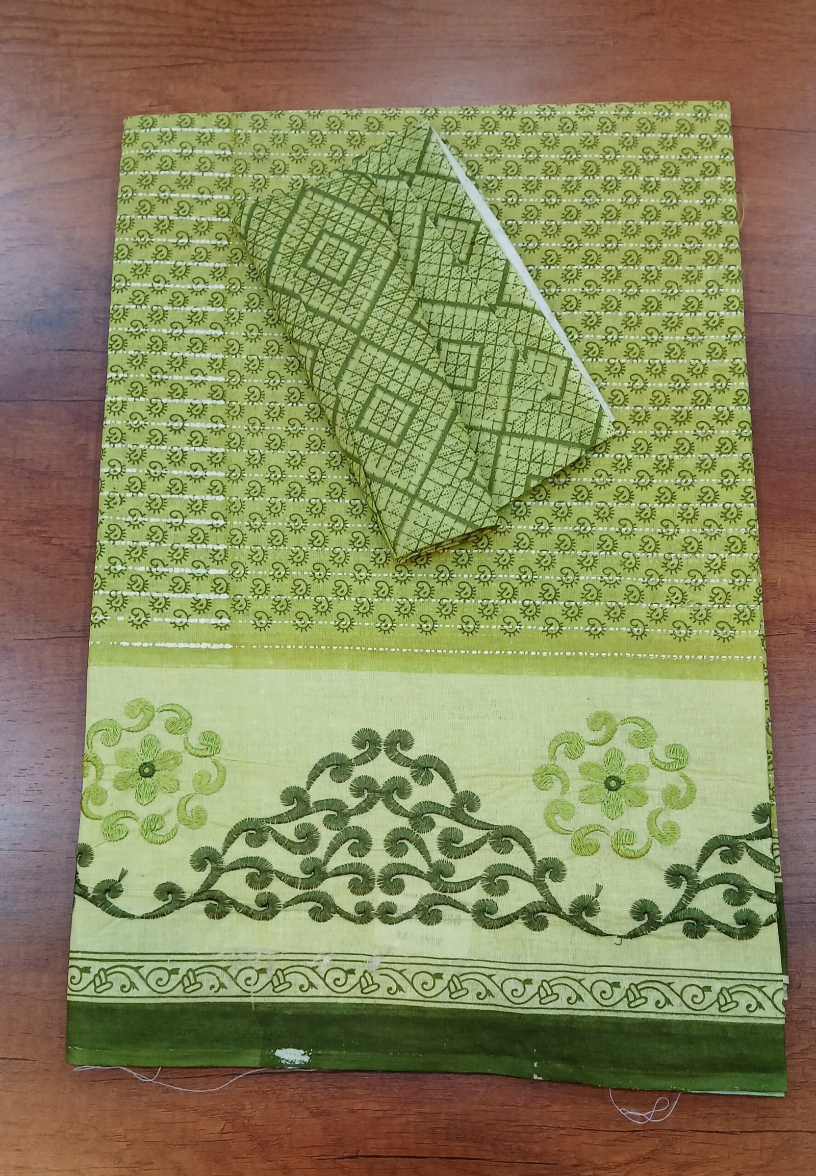 GREEN embroidery cotton saree with blouse