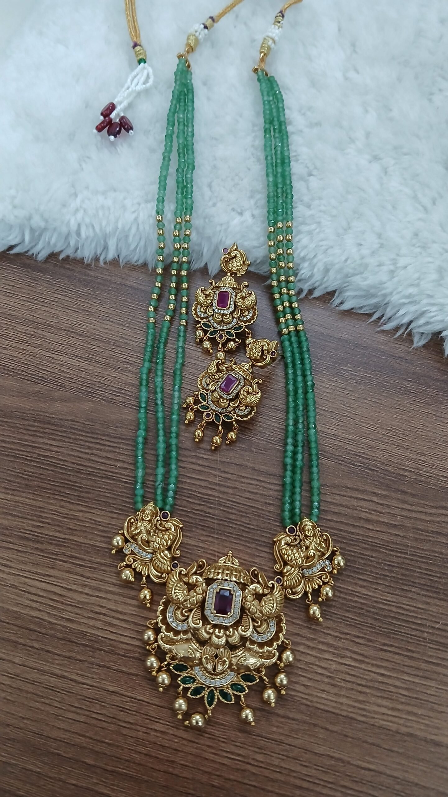 Beads chain with nakshi pendant and earrings