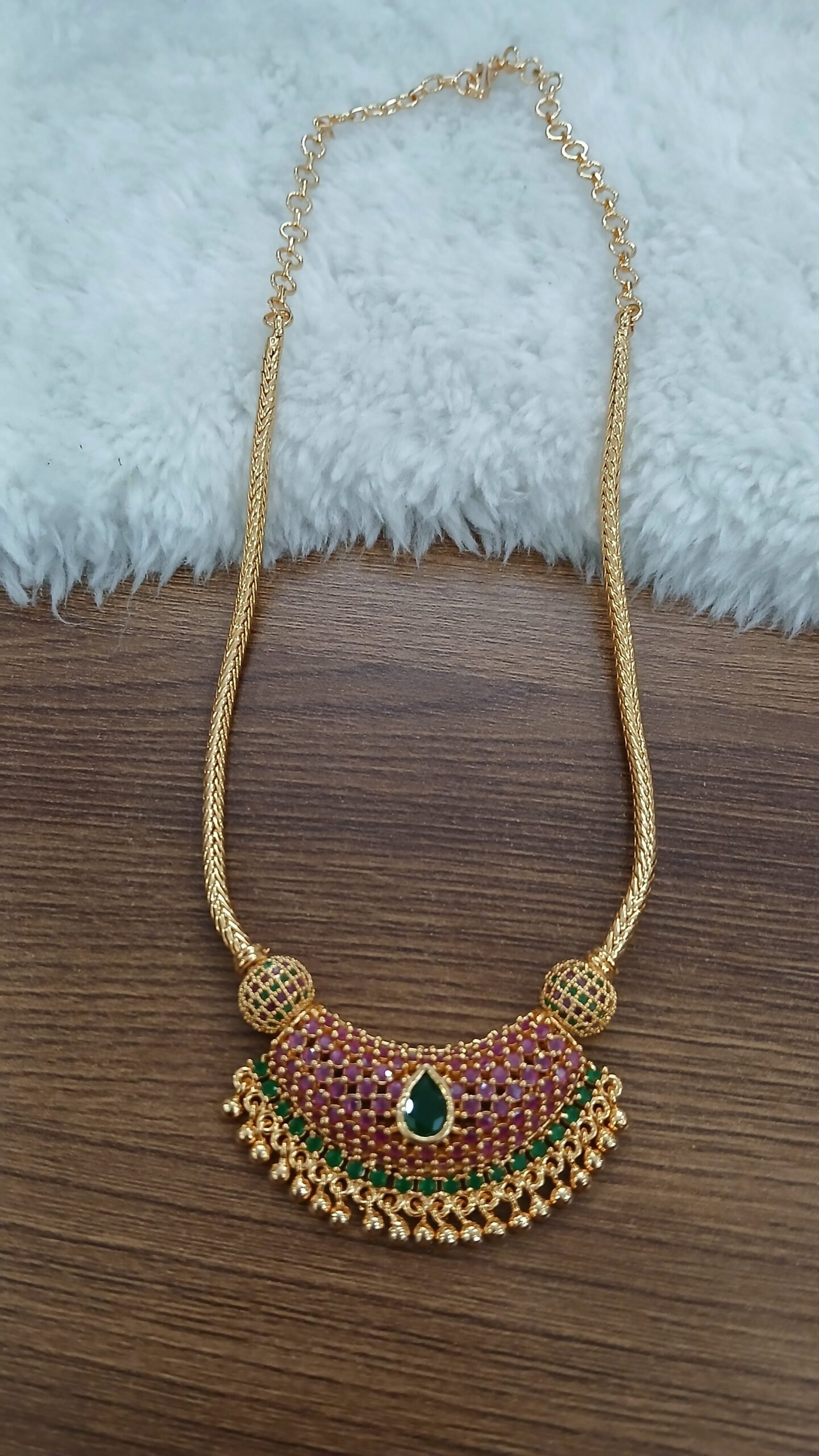 Be the first to review “Green & Pink stone boat shape pendant Micropolish naan chain” Cancel reply