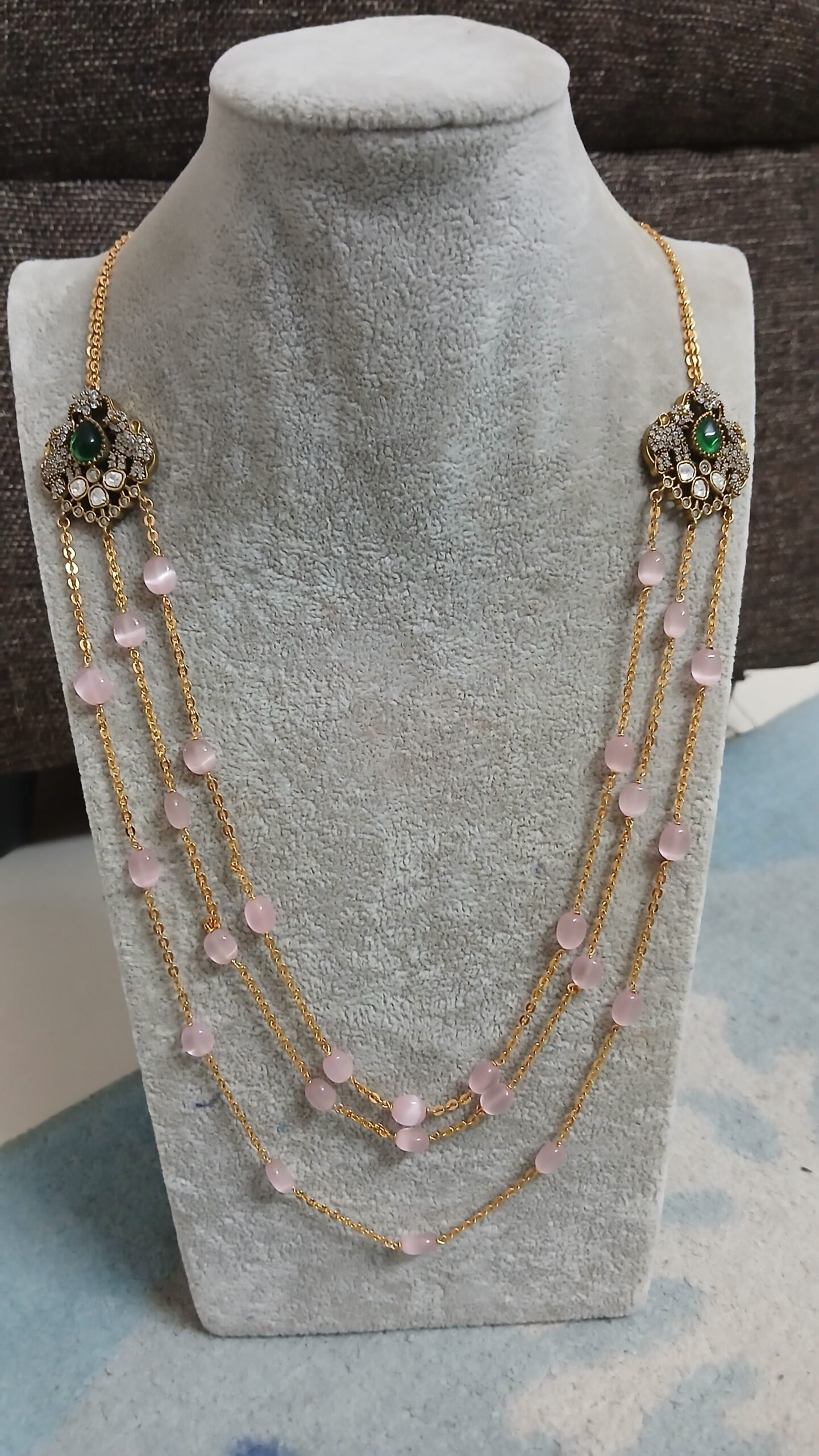 Be the first to review “Green stone Victoria pendant with 3 step monalisa chain” Cancel reply