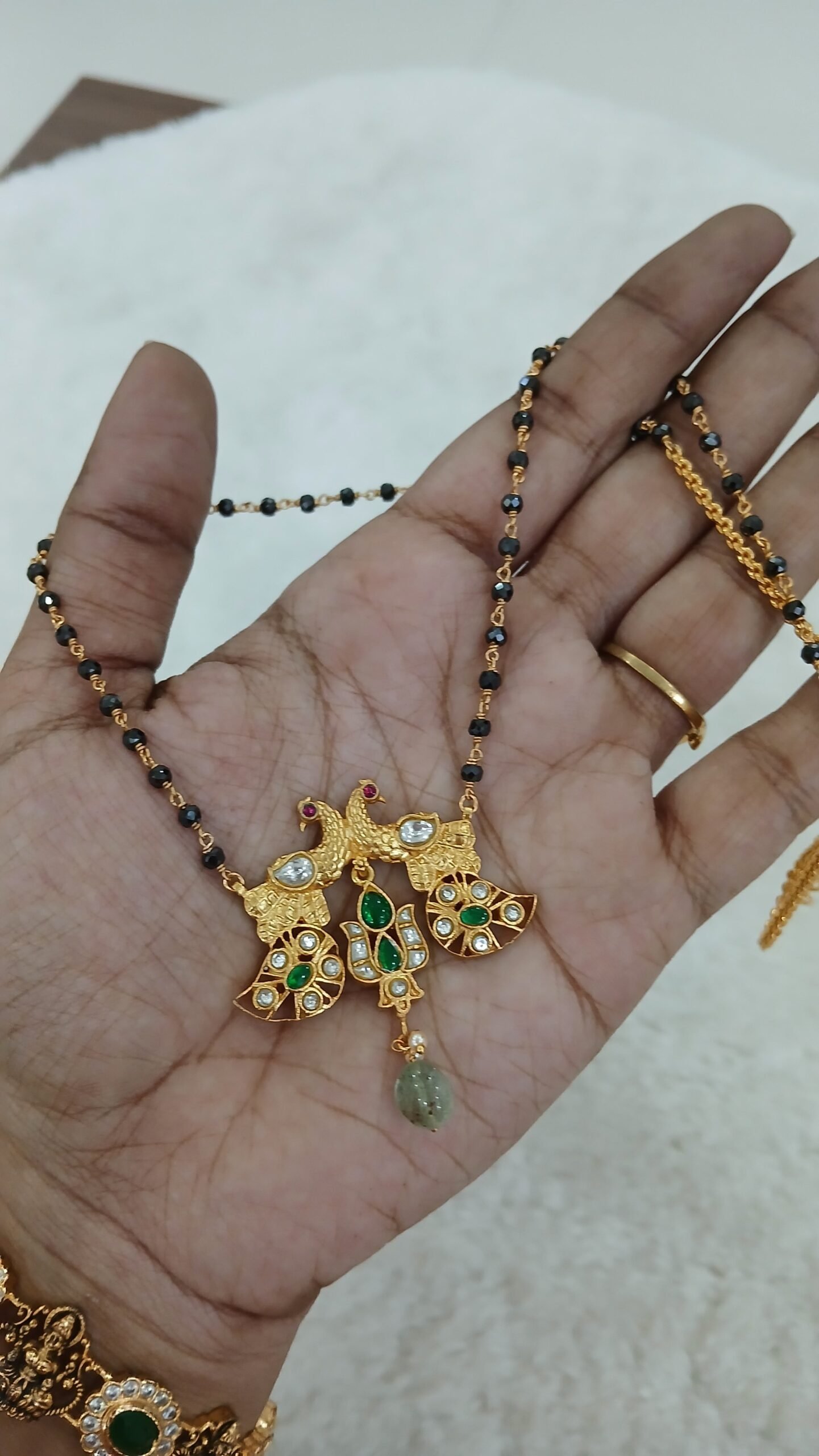 Be the first to review “Jadau peacock pendant with black diamonds” Cancel reply
