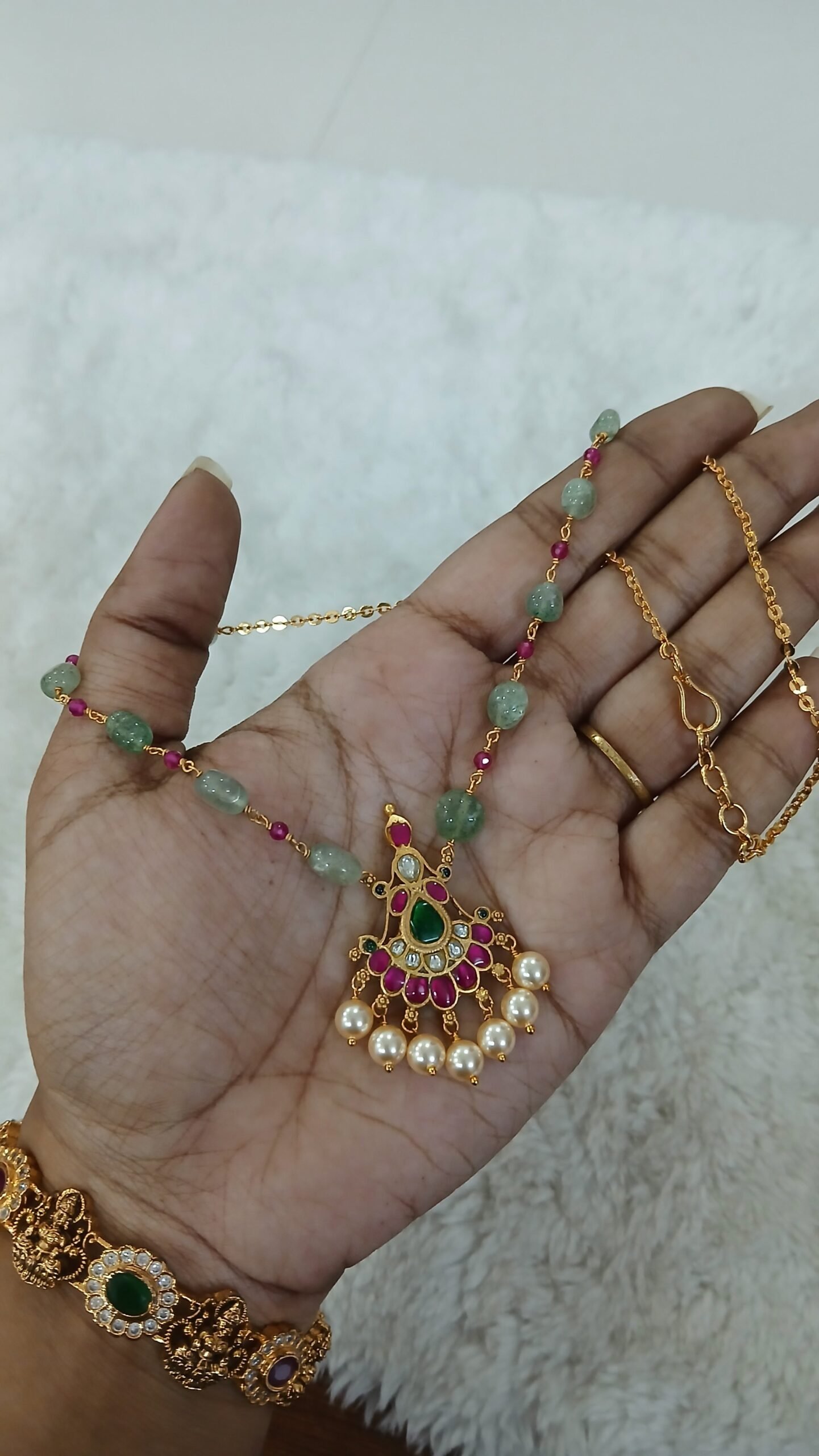 Be the first to review “Jadau pendant with real beads chain”