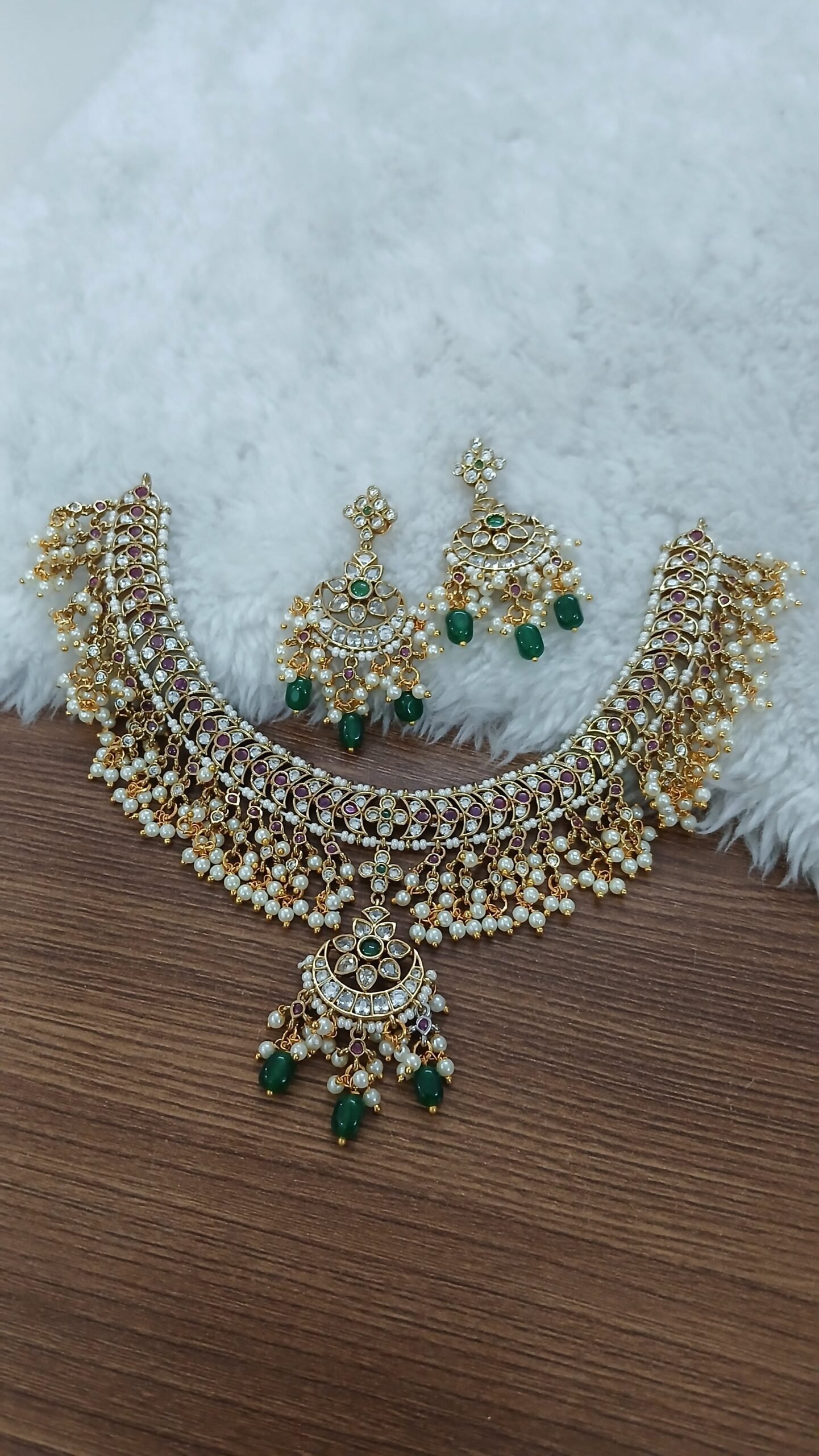 Be the first to review “Kundan with pearls hand made neck set with earrings” Cancel reply