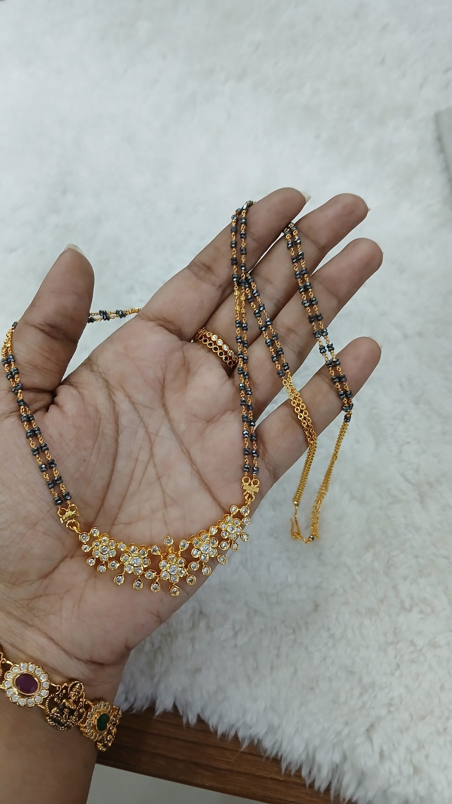 Be the first to review “Long blackdiamonds with stone pendant (kattu theega)” Cancel reply