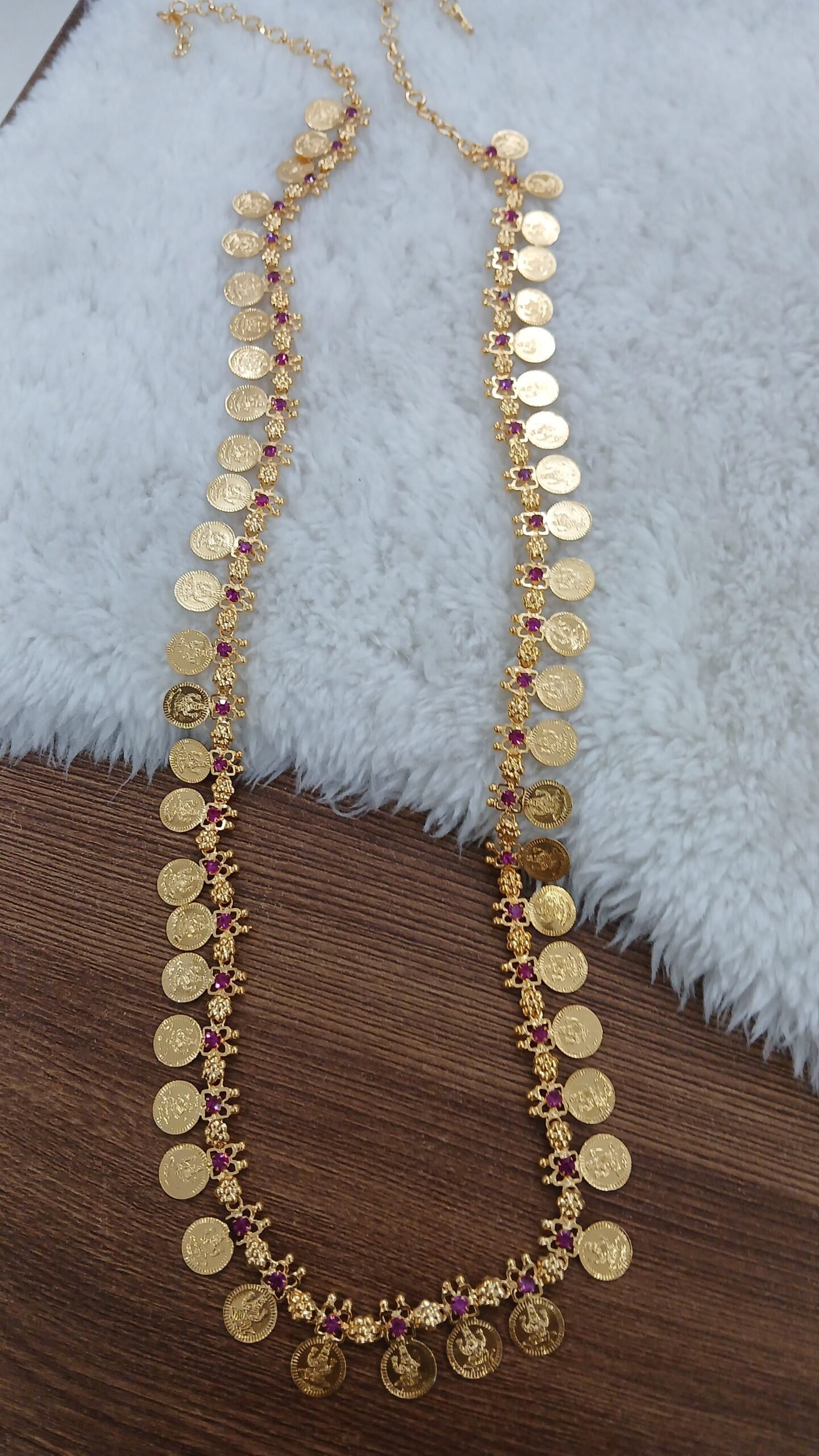 Long Lakshmi kaasu chain with Ruby stones
