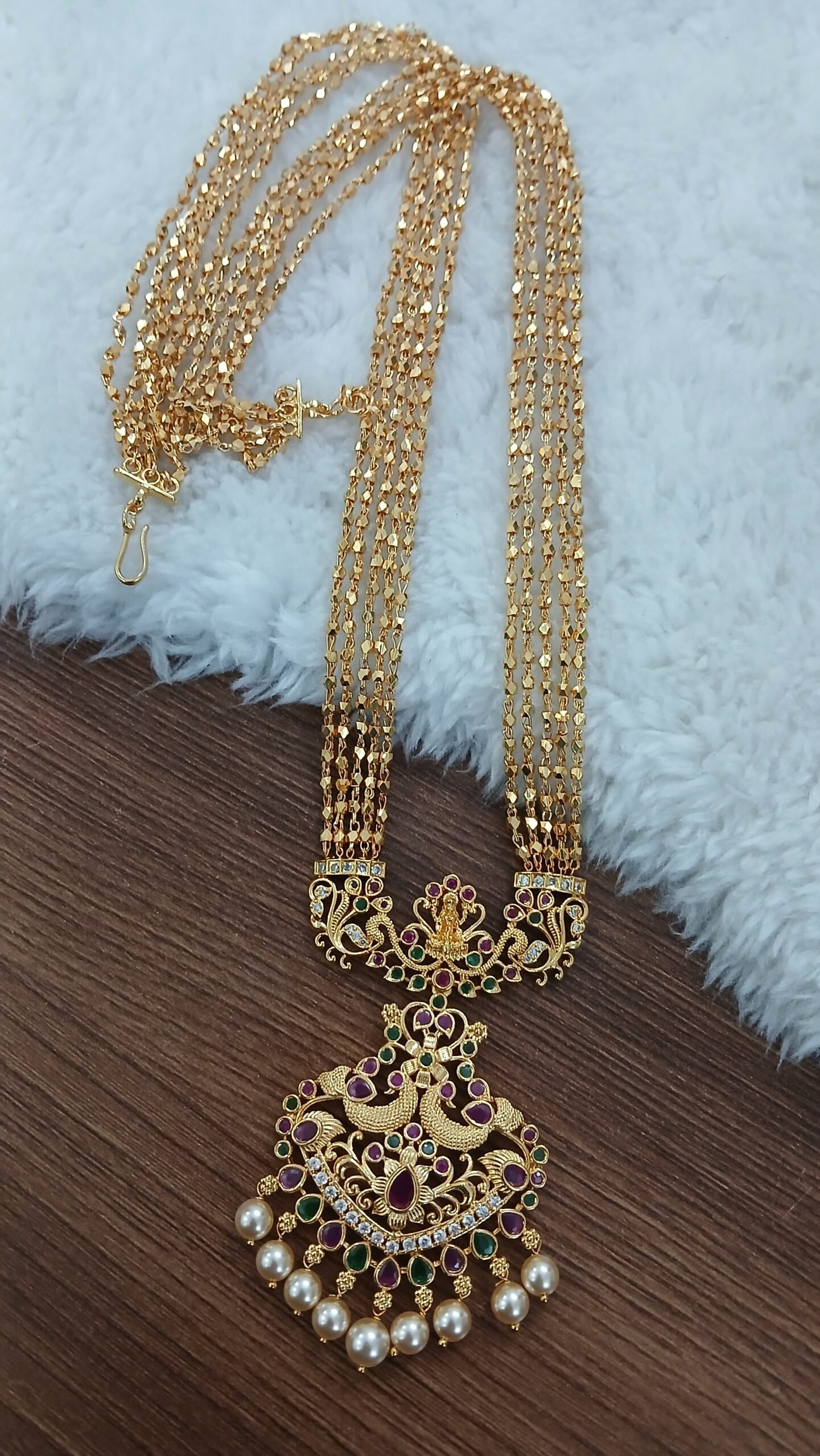 Long Micropolish palakasari raani haaram with Lakshmi pendant