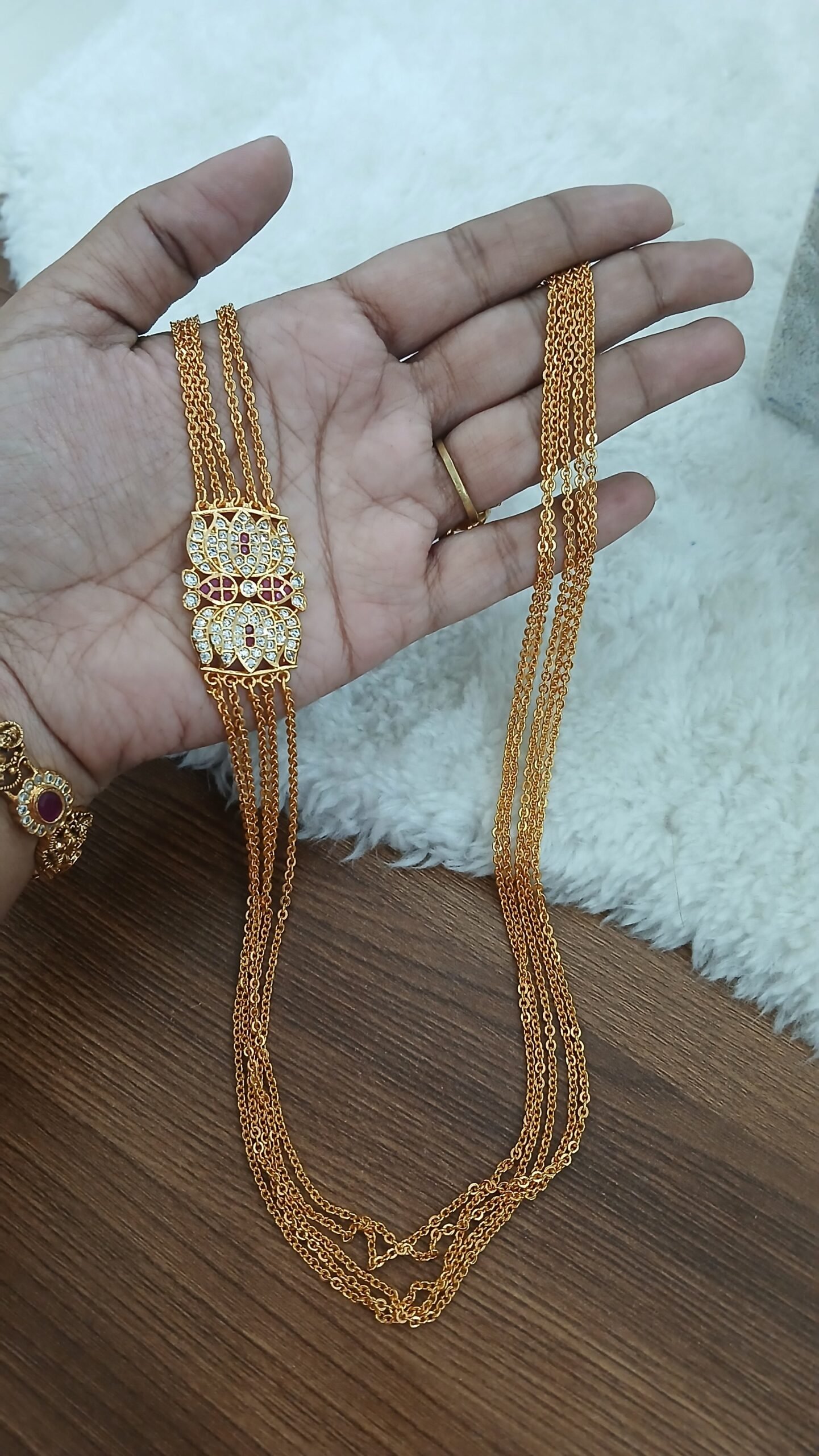 Be the first to review “Lotus pendant with 5 lines chandrahaaram (Pink / white)” Cancel reply