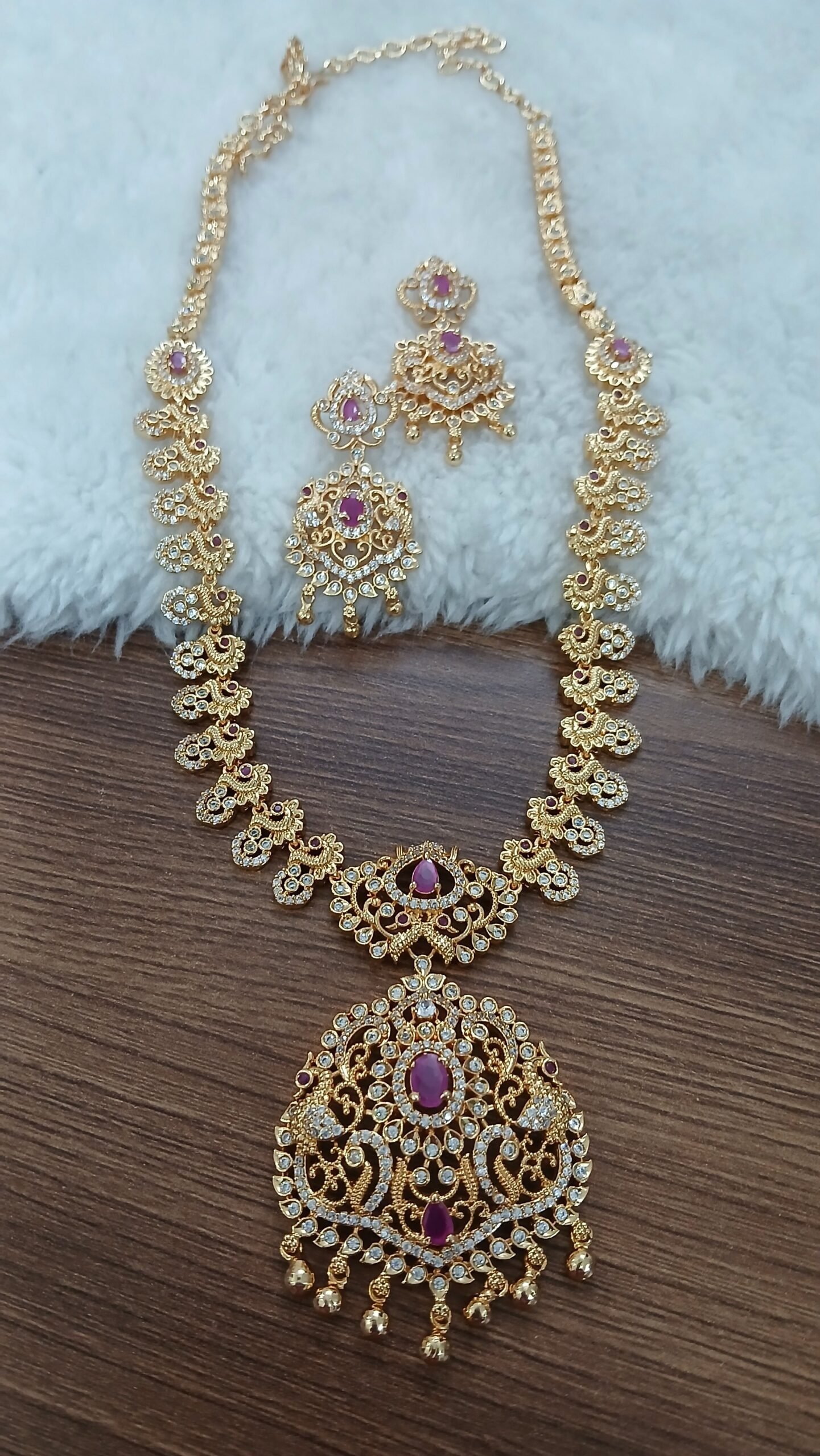 Be the first to review “Micropolish Long Peacock haaram with earrings” Cancel reply
