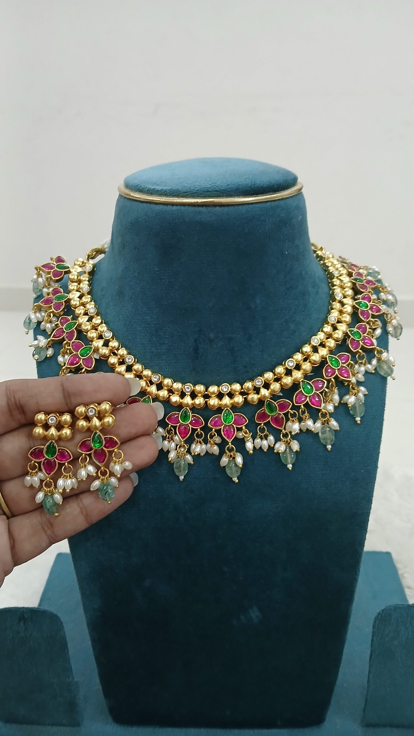 Be the first to review “Multi kundan chocker with earrings” Cancel reply
