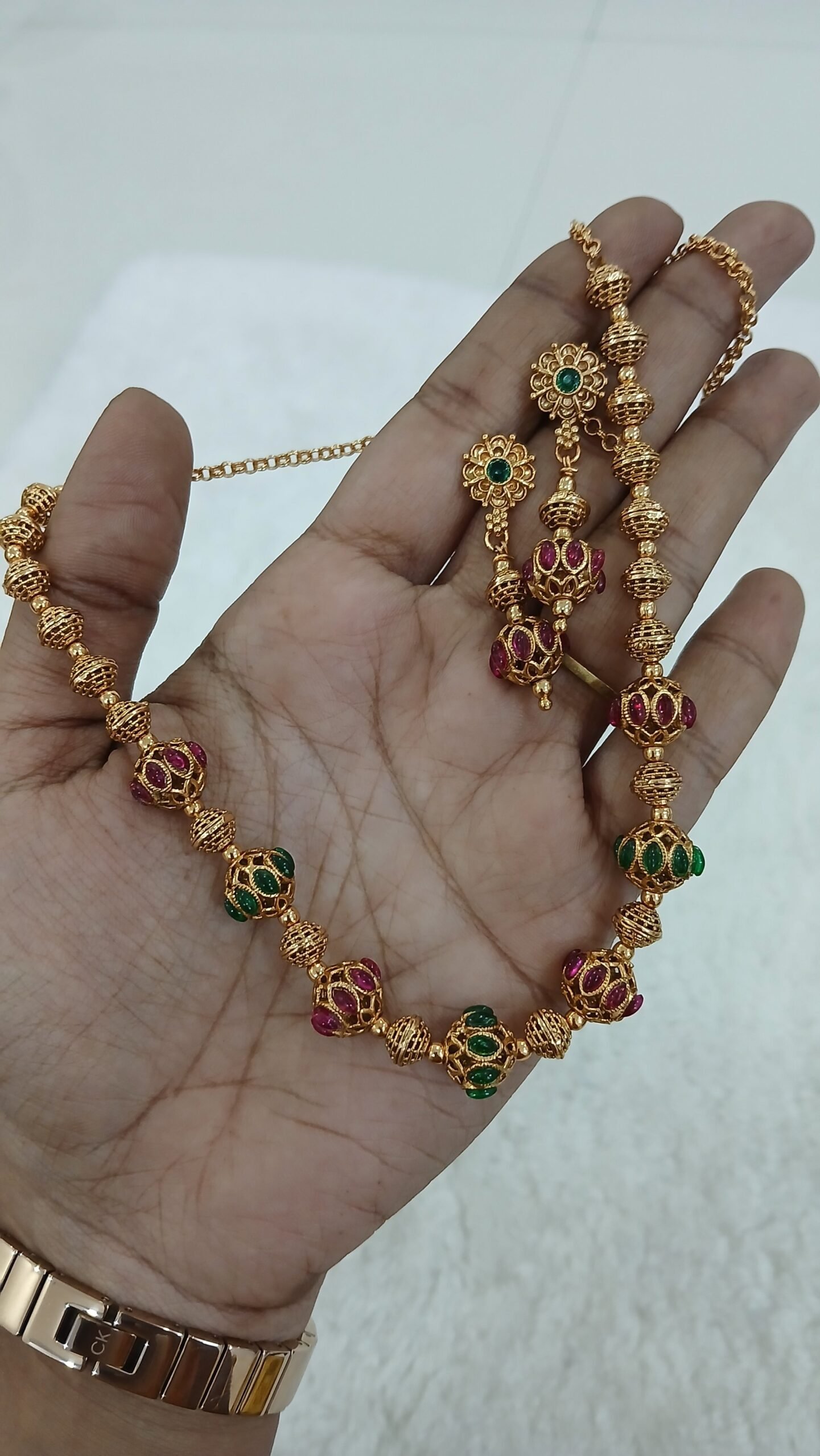 Antique stone ball chain with earrings