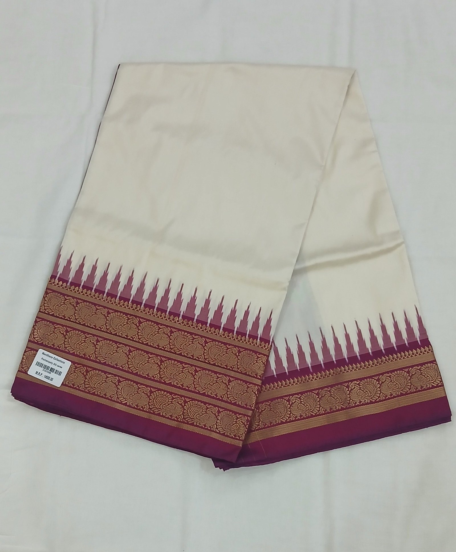 Be the first to review “Off white & deep purple Kanchi border double warp pattu saree with ikkat weaving pallu and blouse” Cancel reply