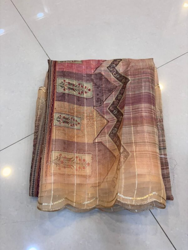 Be the first to review “Peach shade fancy semi organza saree” Cancel reply