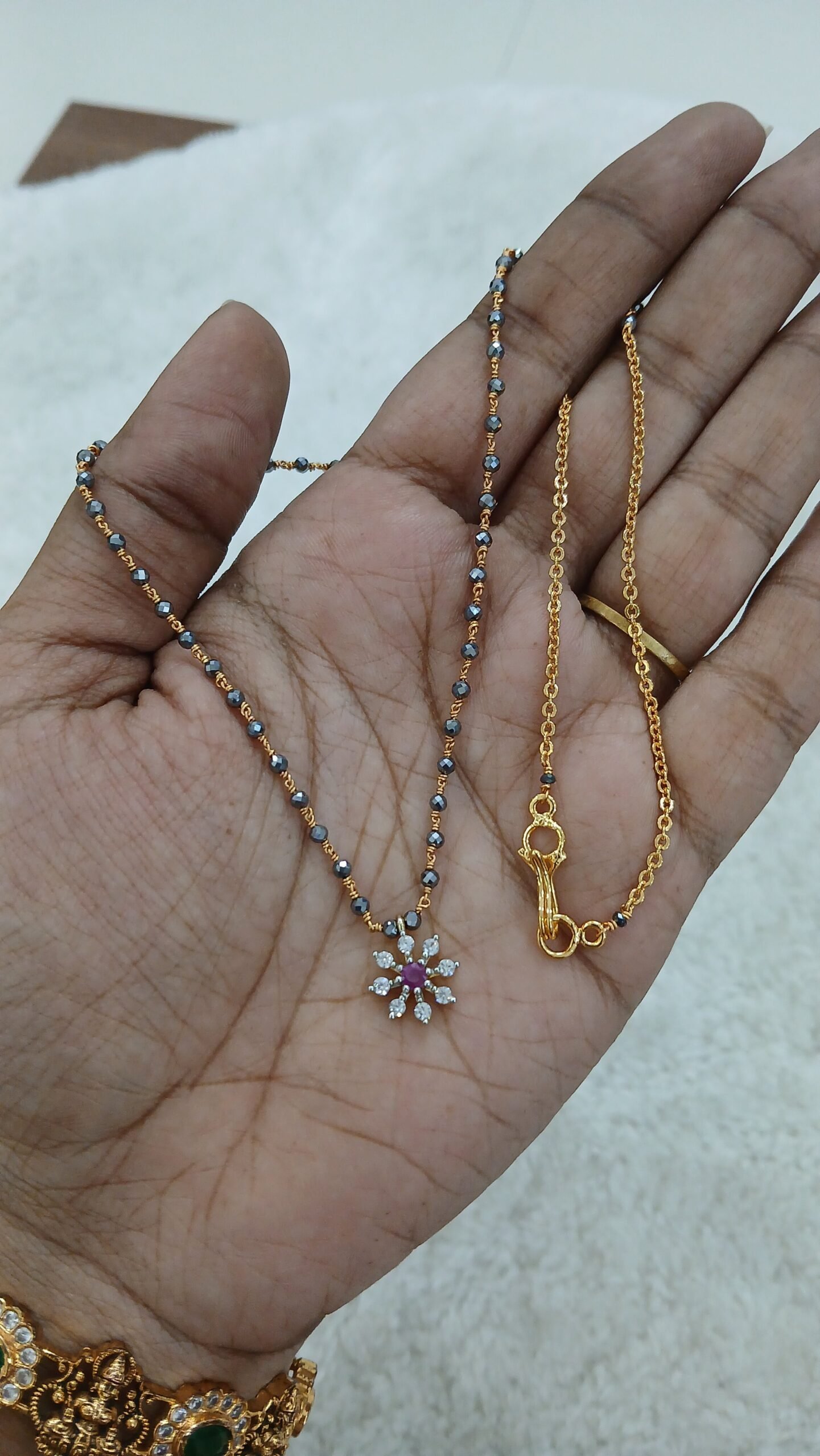 Be the first to review “Pink diamond pendant with black diamonds (Kattu theega)” Cancel reply