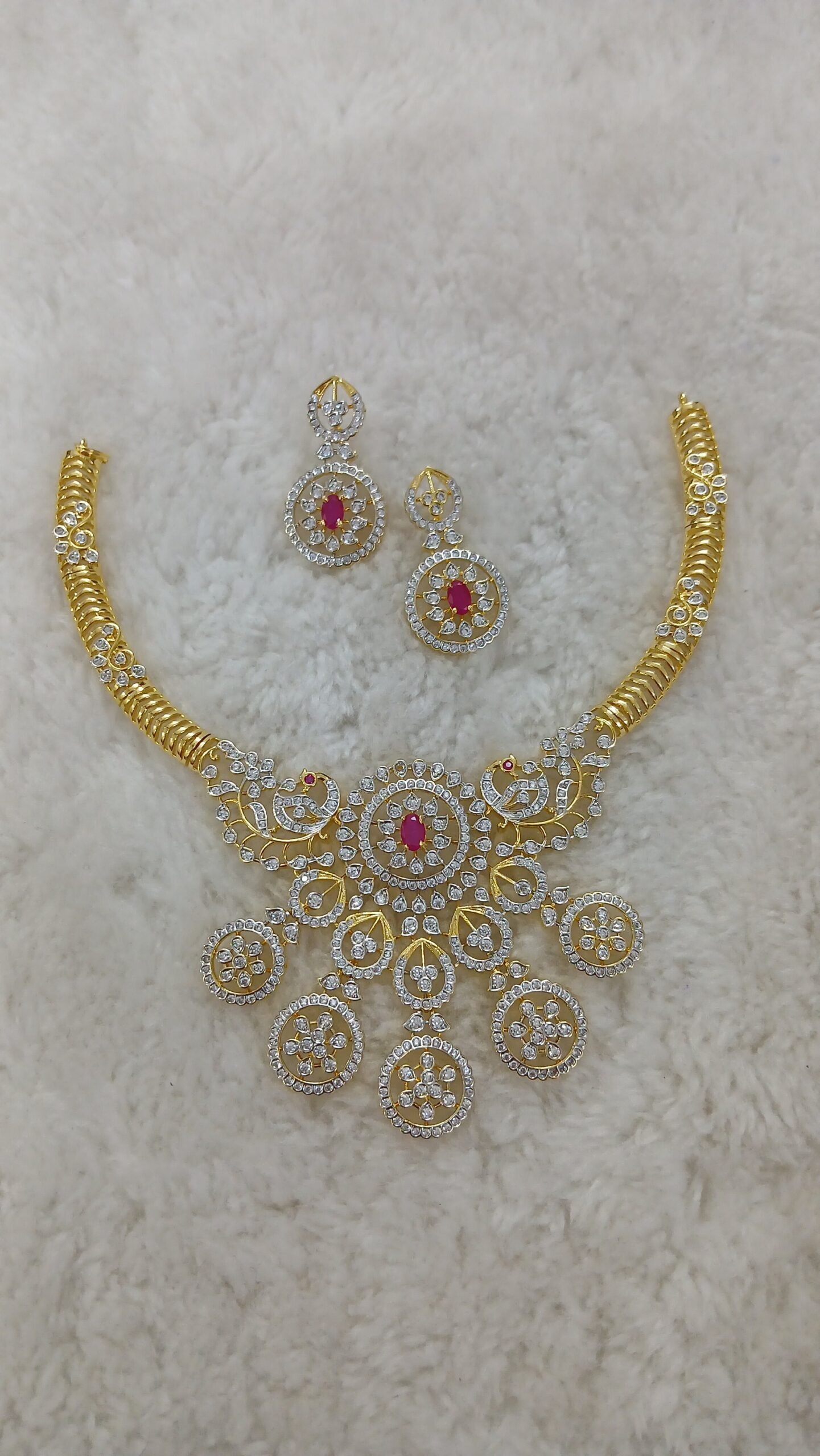Be the first to review “Pink Peacock pattern Diamond copy neck set” Cancel reply