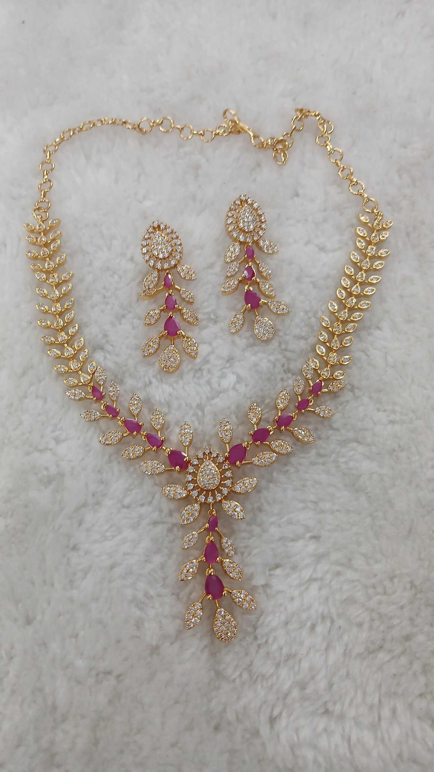 Be the first to review “Pink & White leaf pattern neck set with earrings” Cancel reply