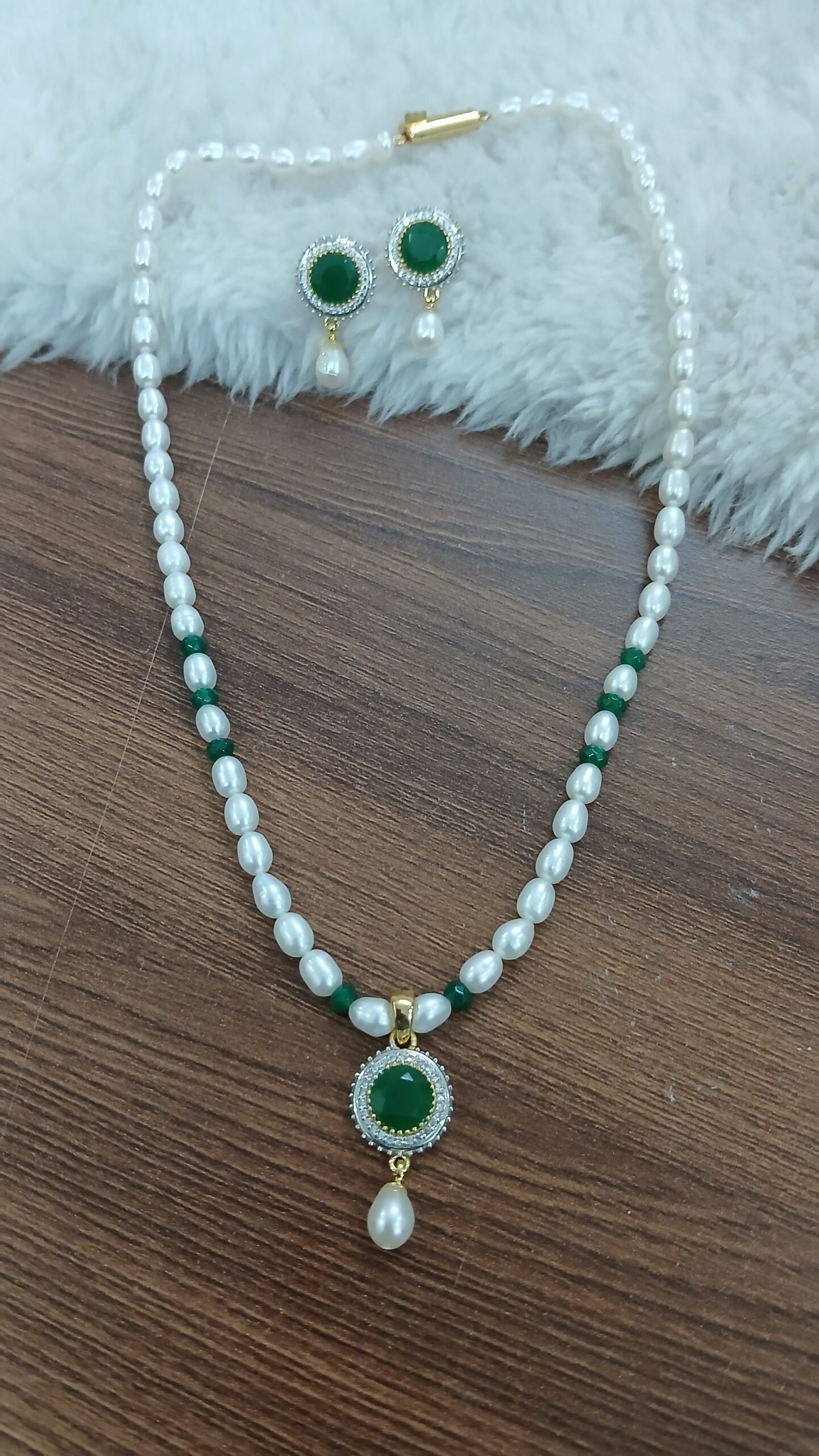 Be the first to review “Real Pearl with Green stone pendant & Earrings” Cancel reply