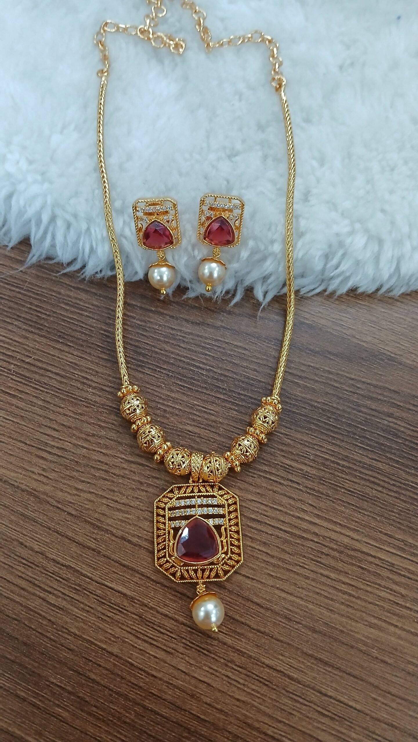 Be the first to review “Red stone simple chain with earrings” Cancel reply