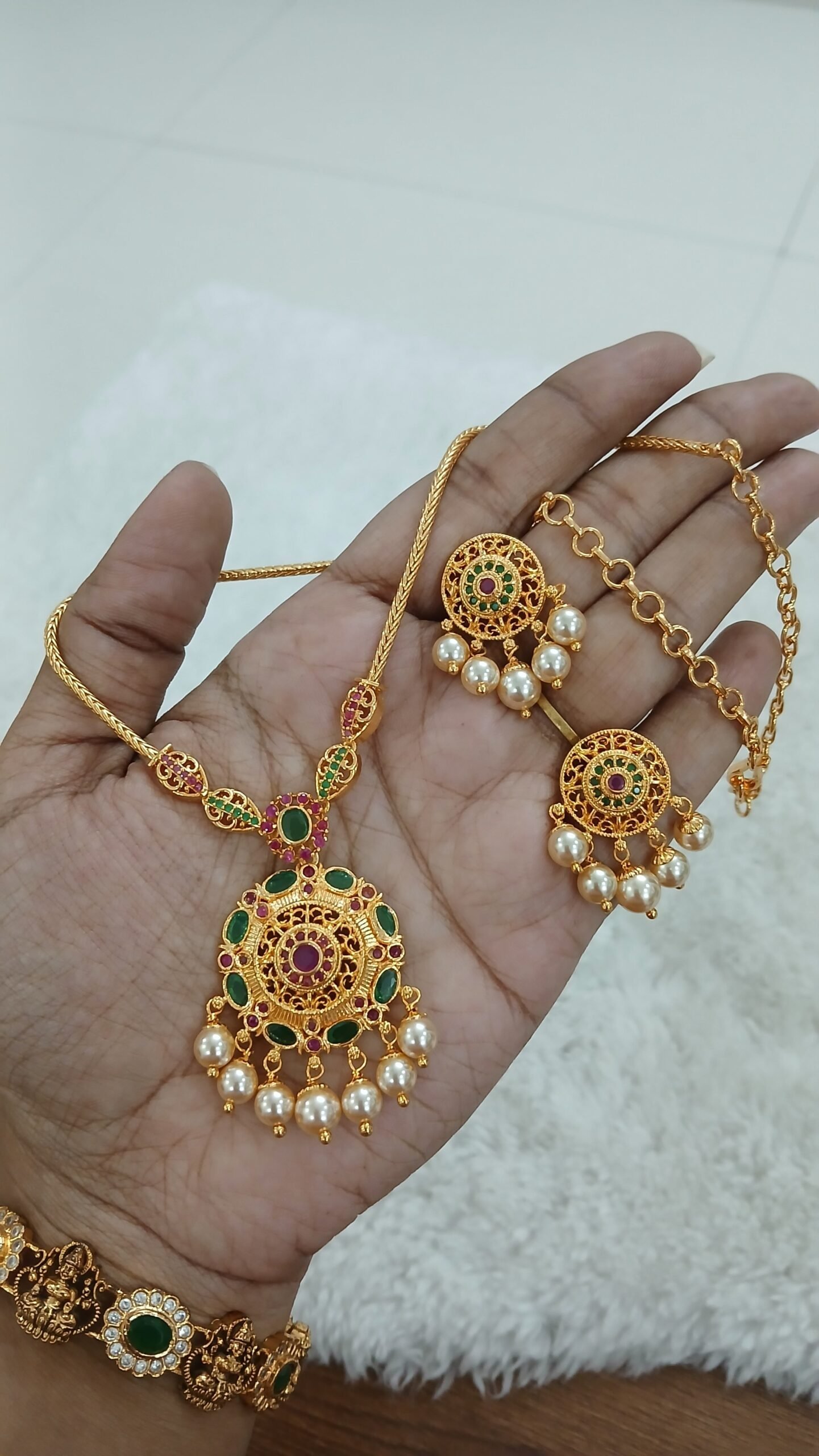Be the first to review “Round shape pendant with earrings (PINK & GREEN)” Cancel reply