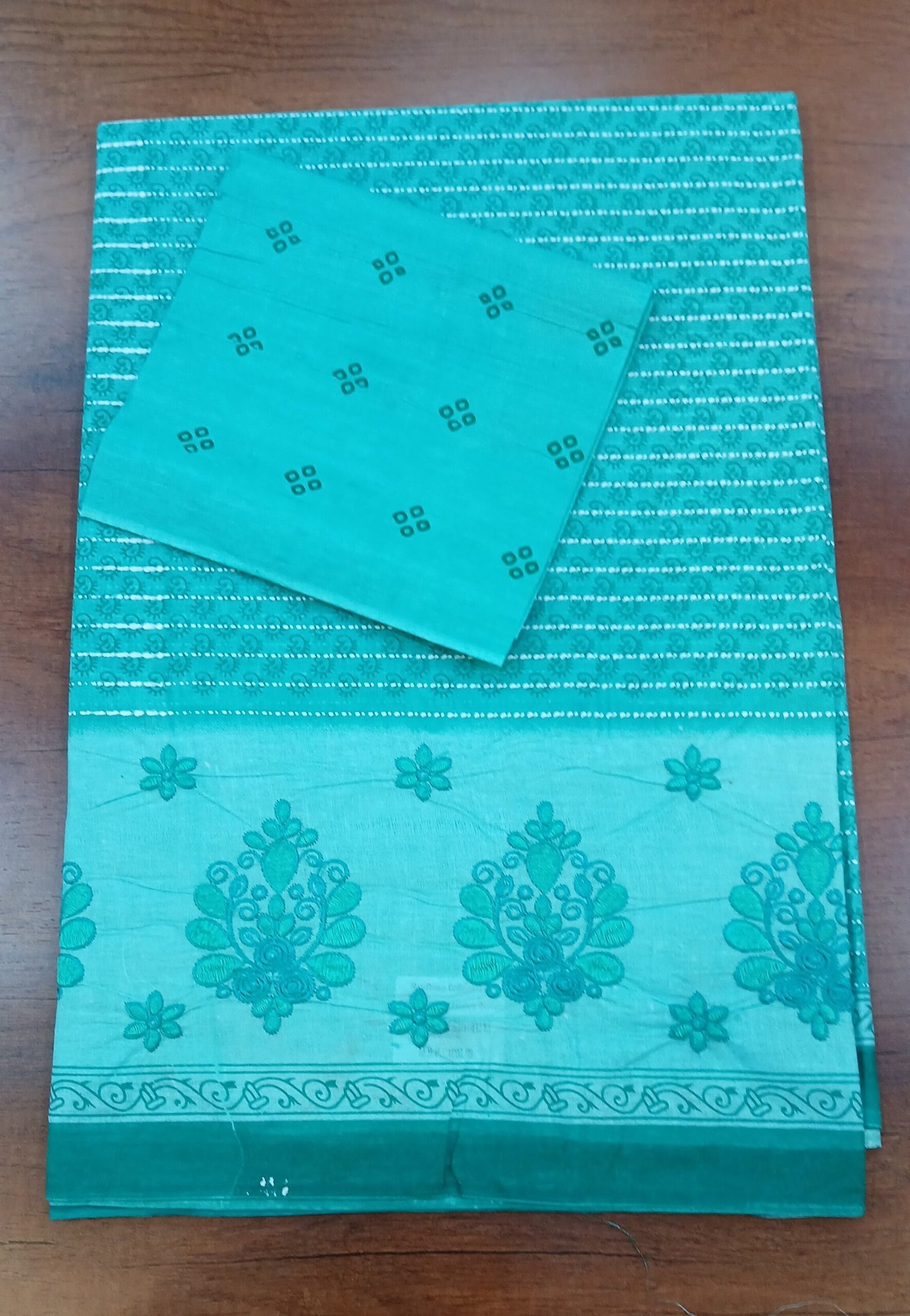 Be the first to review “SEA GREEN embroidery cotton saree with blouse” Cancel reply